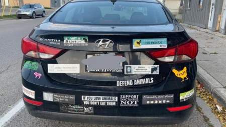 McCuaig has over a dozen bumper stickers on her car, all related to a topic that’s near and dear to her — animal rights.