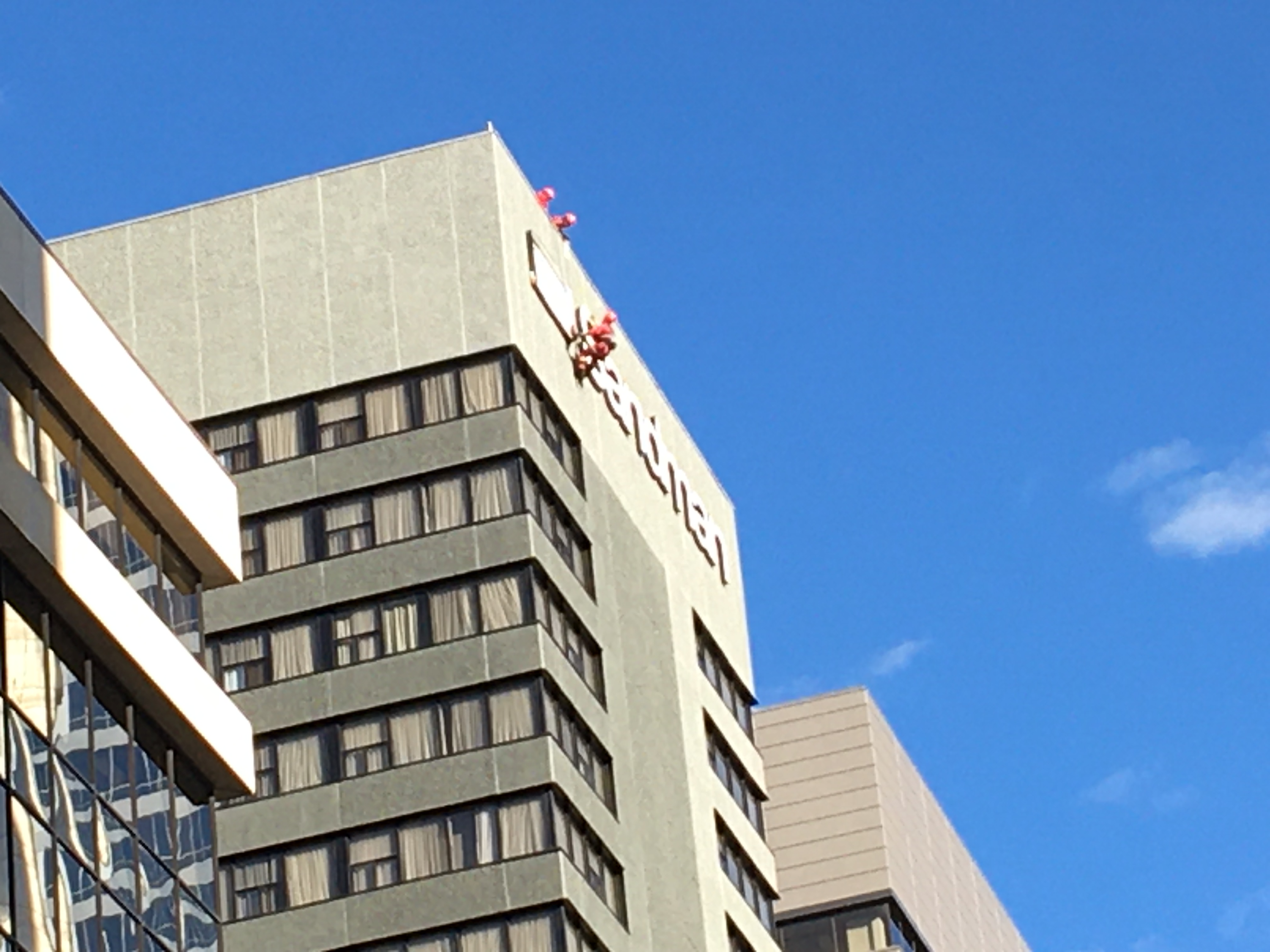 The Calgary Fire Department said firefighters were called to the downtown core after receiving a call about concerns over the sign on top of the Sandman Hotel.