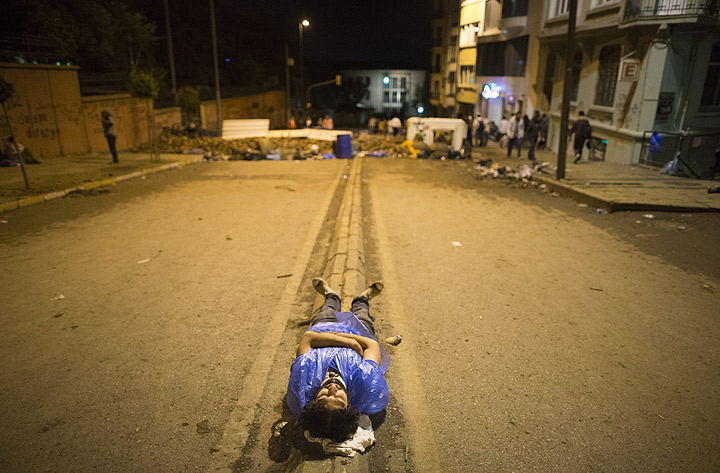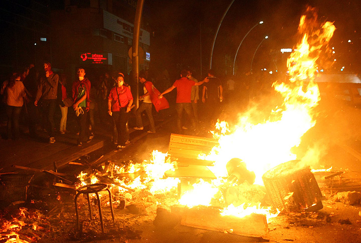 The private Dogan news agency said police fired tear gas at the group in an area close to Prime Minister Recep Tayyip Erdogan’s Istanbul offices today. The protesters responded by hurling stones.