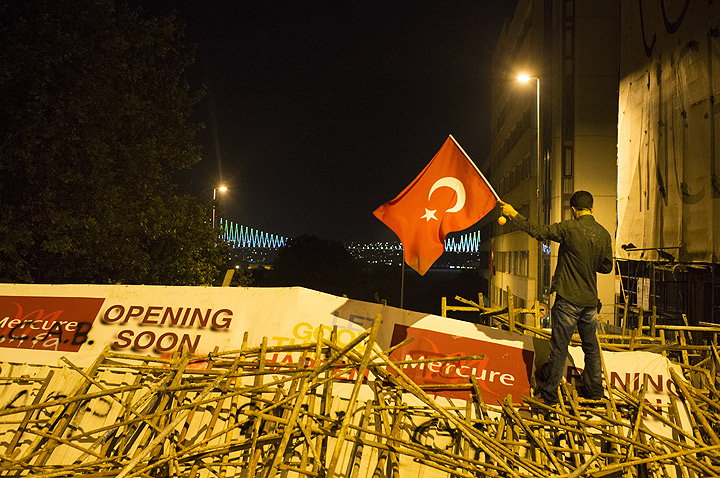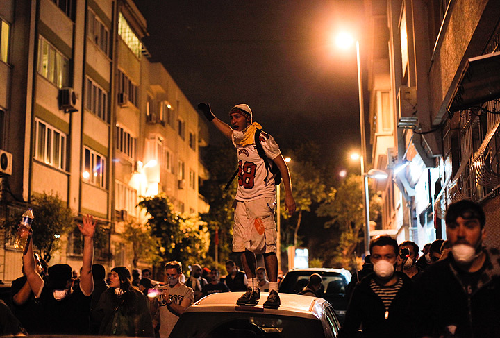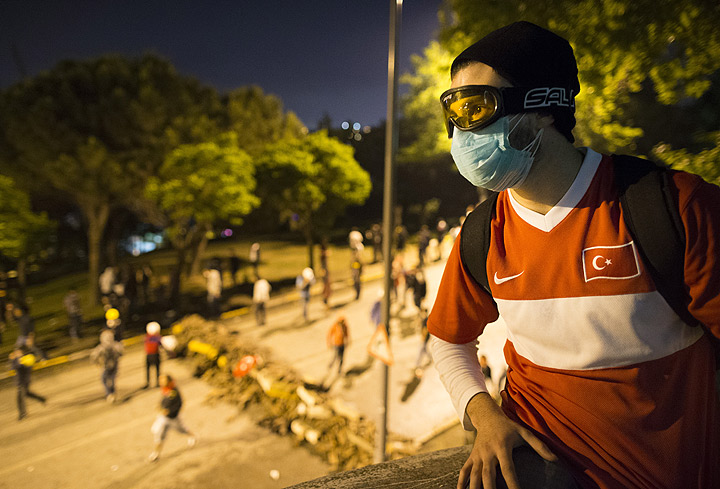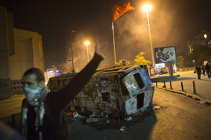 Watch: Turkish protesters commandeer digger and drive it towards police water canon