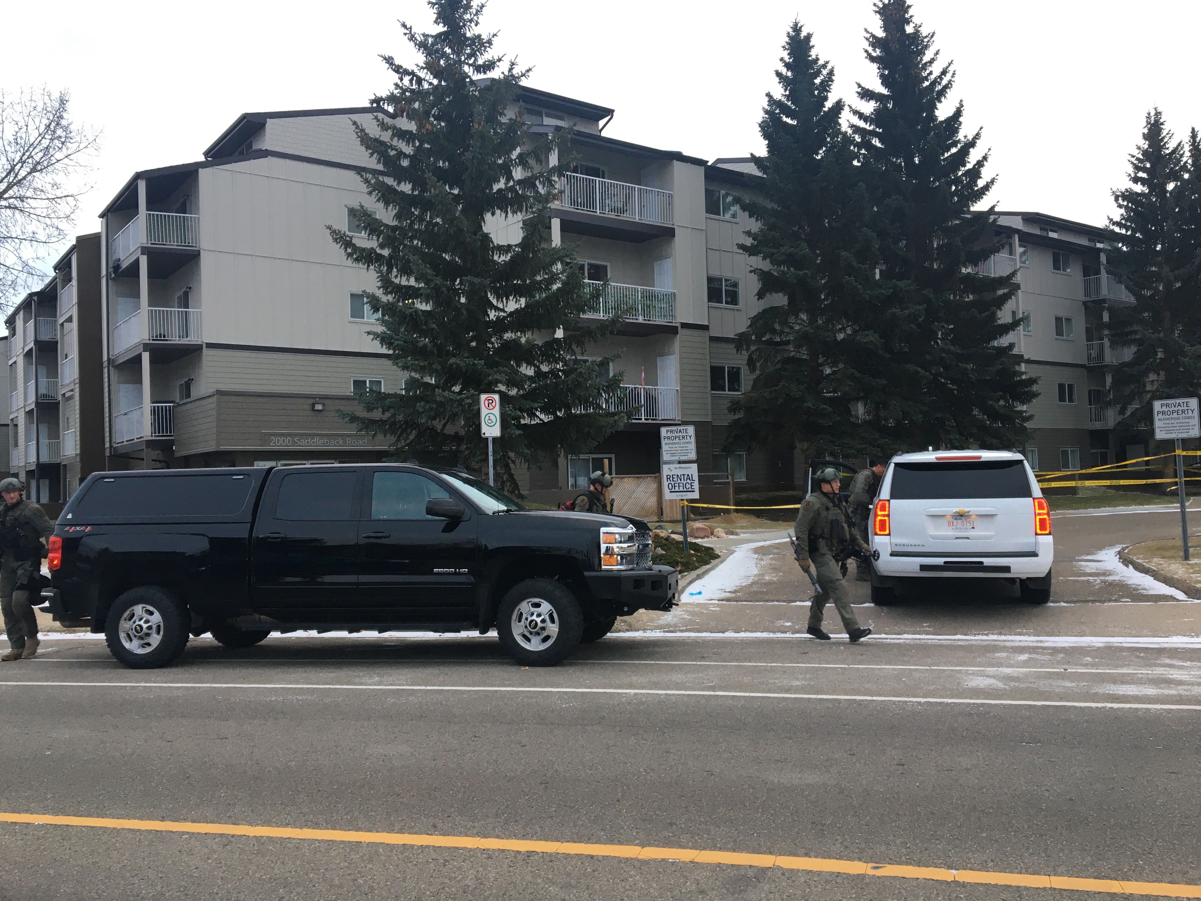 Emergency crews were called to the Heatheridge Estates Apartments on Saddleback Road east of 18 Avenue at around 3:07 p.m. Police said they found the injured man in the apartment’s parking lot.