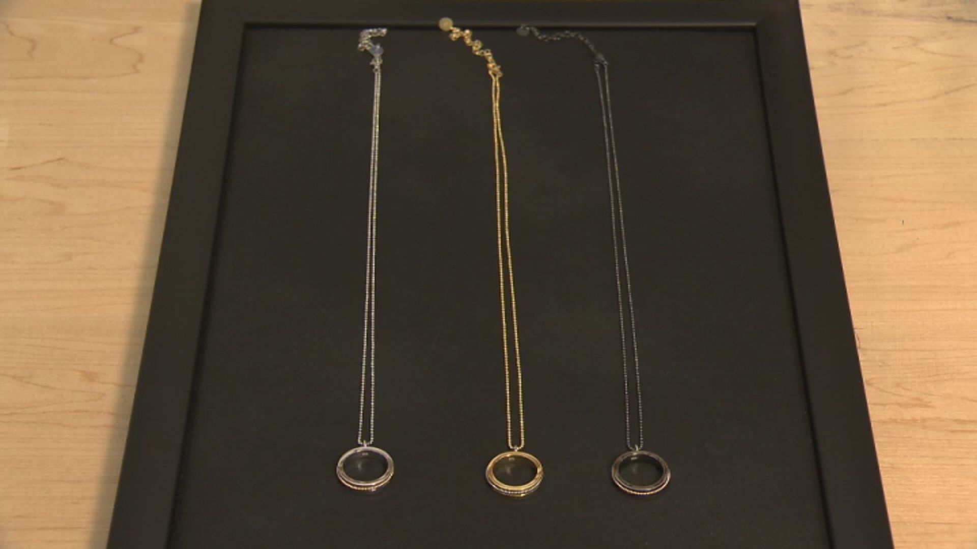 “They’re sterling silver with either a gold plating, a black rhodium plating or a rhodium plating that looks silver. It has a piece of either electric or acoustic string on the pendant. And it’s engraved with the foundation’s symbol of community support, which is a heart.”