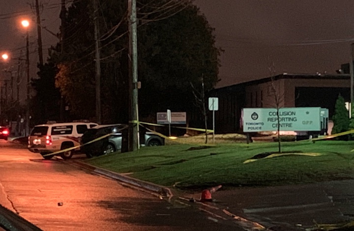 Investigators taped off a large area in front of, and at, the Toronto police and OPP collision reporting centre on Howden Road.