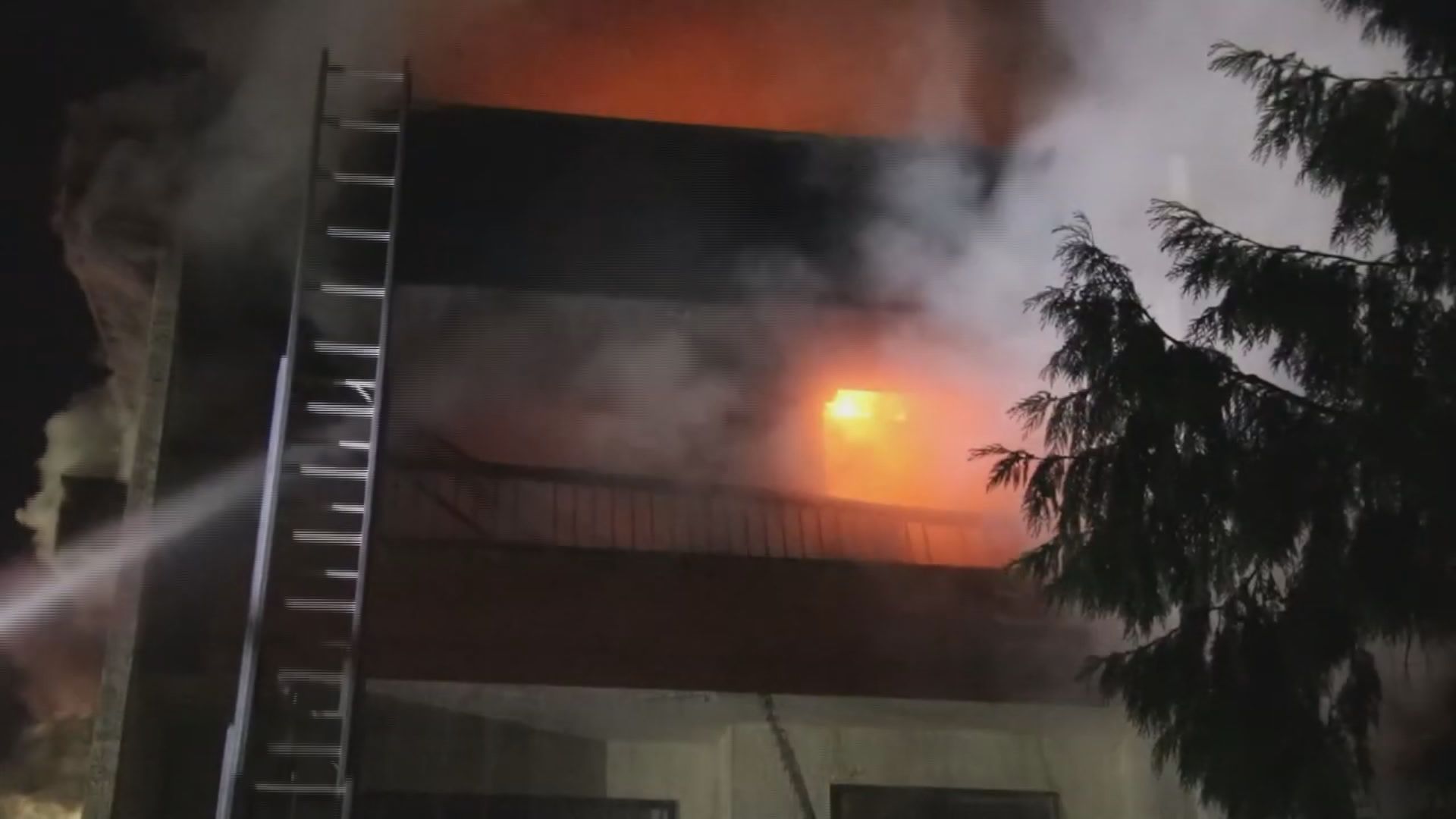 The flames broke out in a third-floor unit of the building near 106 Avenue and 150 Street.