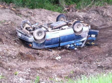 The vehicle was at the bottom of a 10 meter embankment off highway 97-A at Eagle Point road near Armstrong.