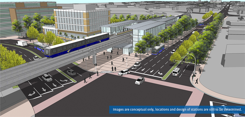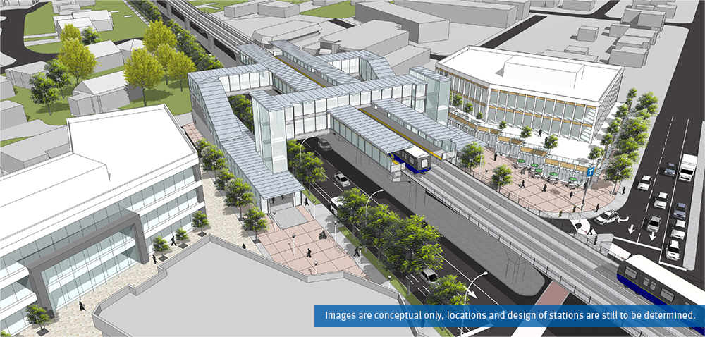 The stations, which will all be elevated, will be set up along the Fraser Highway at 140 Street, 152 Street, 160 Street and 166 Street.