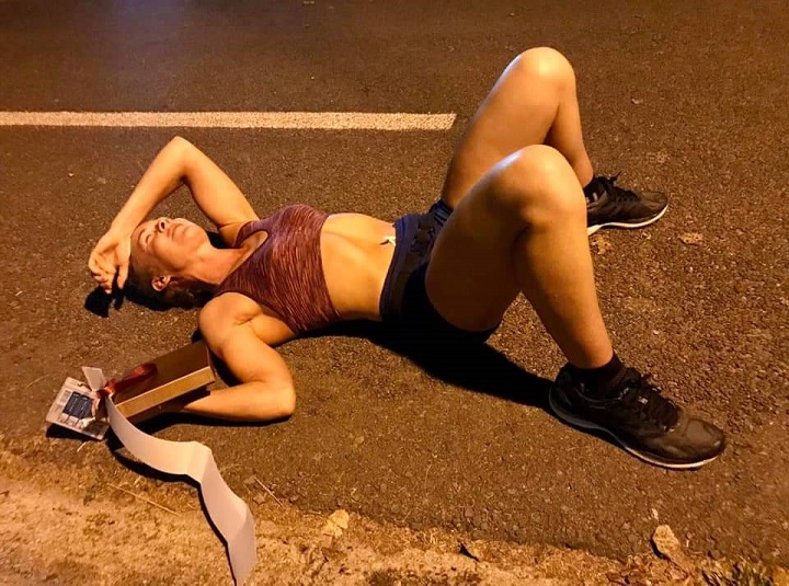 In between, she swam 76 kilometres in a 50-metre pool; biked 3,600 km on a 7.2-km looped circuit; and ran 844 km on a 2.1-km loop.