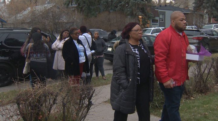 People gathered Saturday, Nov. 2 to pay tribute to Deborah Onwu, a case worker who was killed in Calgary on Oct. 25. Global News