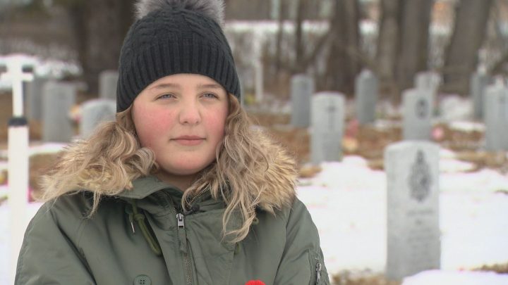 During the city’s first No Stone Left Alone ceremony, she and her Grade 7 classmates from Humboldt Public School also read out the names of Canadians who paid the ultimate sacrifice.