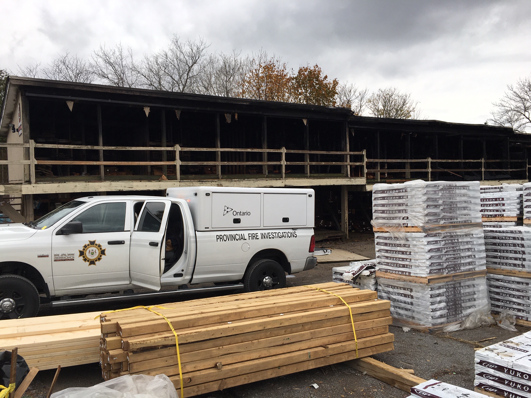 Just before midnight, Peterborough Fire Services responded to a reported fire in a lumber storage building at Merrett Home Hardware Building Centre. A short time later, police were dispatched to the scene.