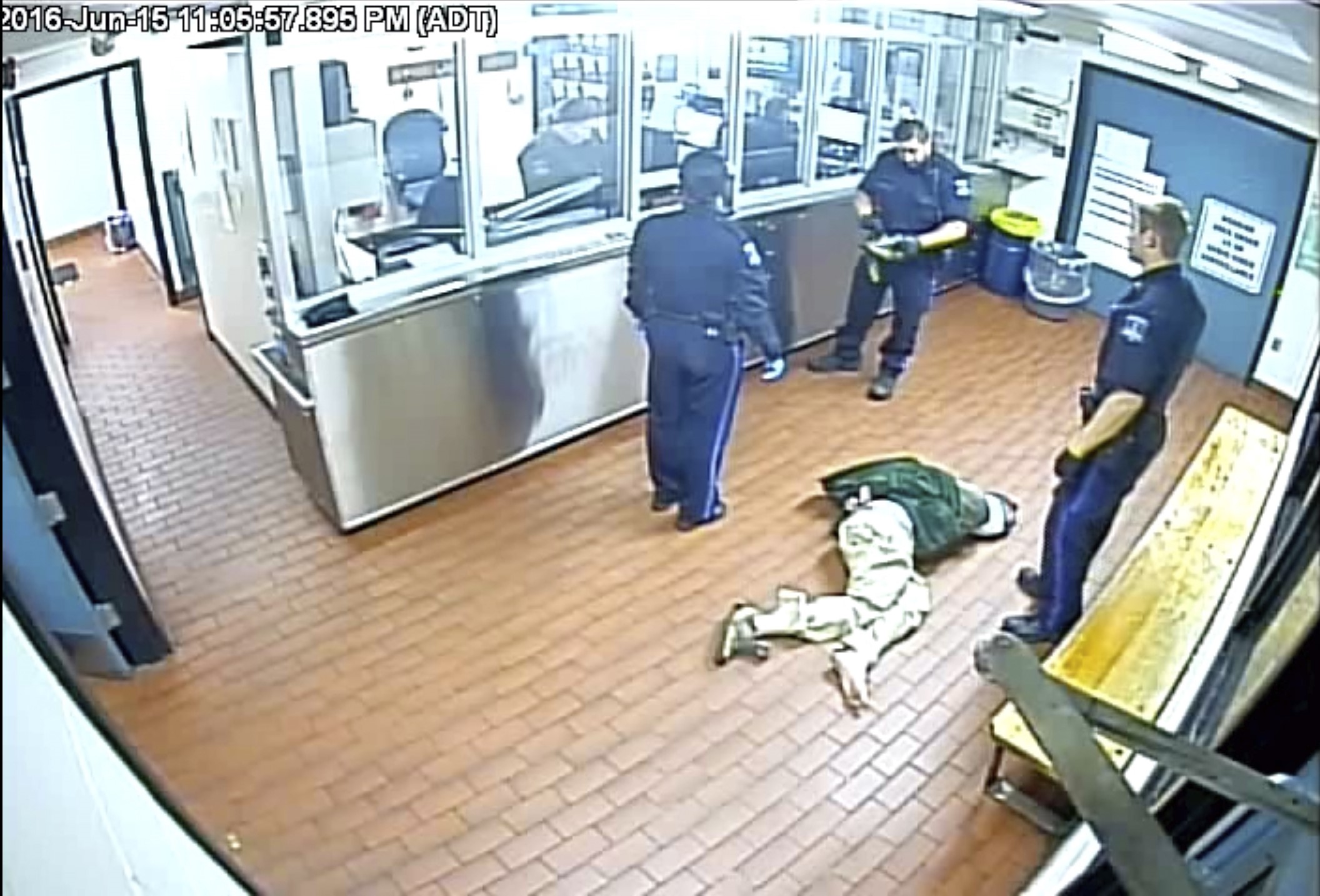 The jury has viewed video of Rogers heaving in the cell while wearing the spit hood, and an autopsy states the heaving suggested the inmate had vomited into the mask, and he died from suffocation.