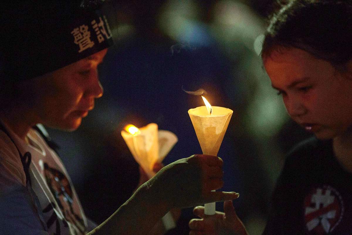 The vigil was cut short by a brief but heavy tropical downpour that sent some scurrying for the exits. But many remained, huddling with their candles under umbrellas. Organizers estimated a crowd of 150,000 while police put the number at 54,000, local media reported.