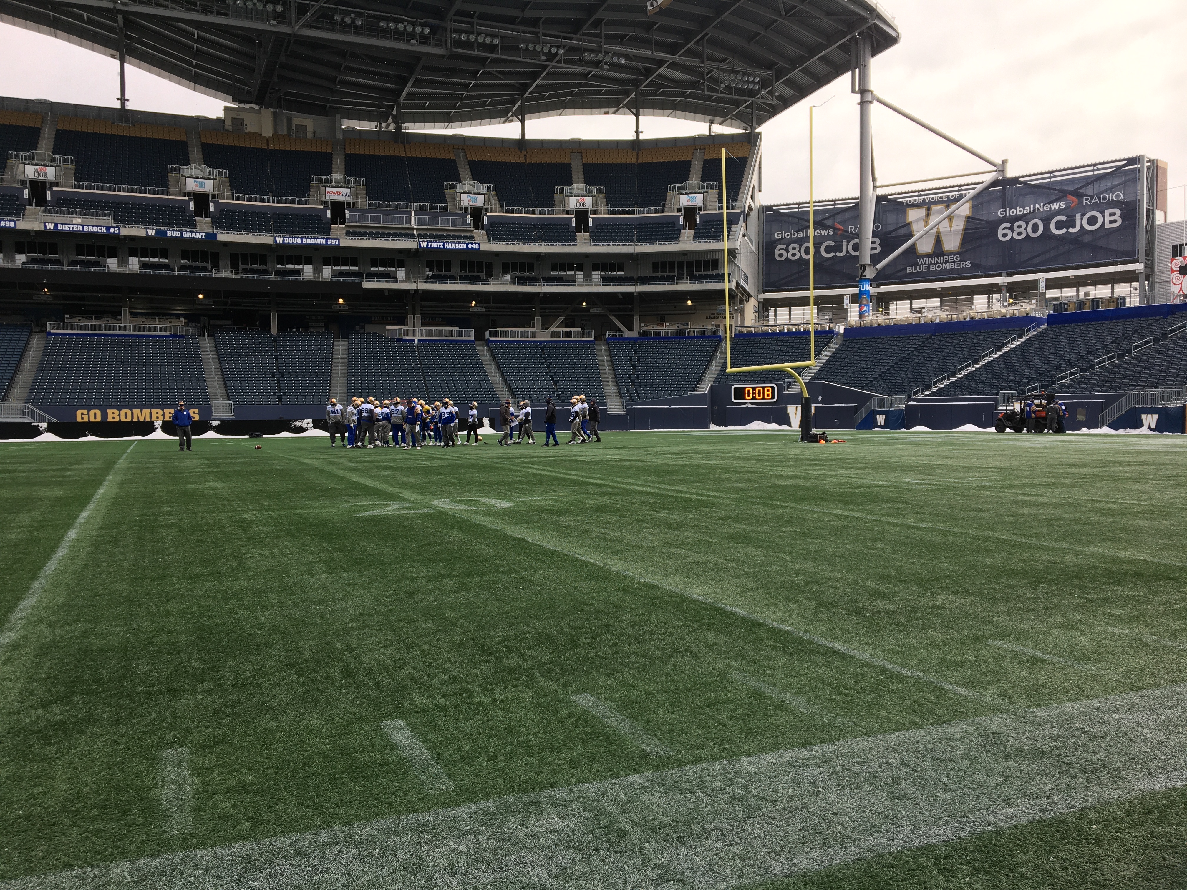 The Bombers were practicing in a snow covered stadium Wednesday and die-hard fans were in the stands, happy to support their team.