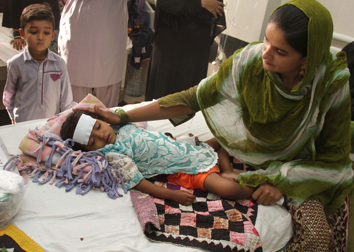 A girl suspected of suffering from a drug-resistant typhoid receives medical treatment at a hospital in Hyderabad, Pakistan, 23 February 2018. Dozens of children have died in Hyderabad as a result of what has been termed the world's first outbreak of drug-resistant typhoid. According to reports, the typhoid strain causing the outbreak acquired an additional piece of DNA to become resistant to multiple antibiotics, including a third-generation antibiotic. EPA/NADEEM KHAWER