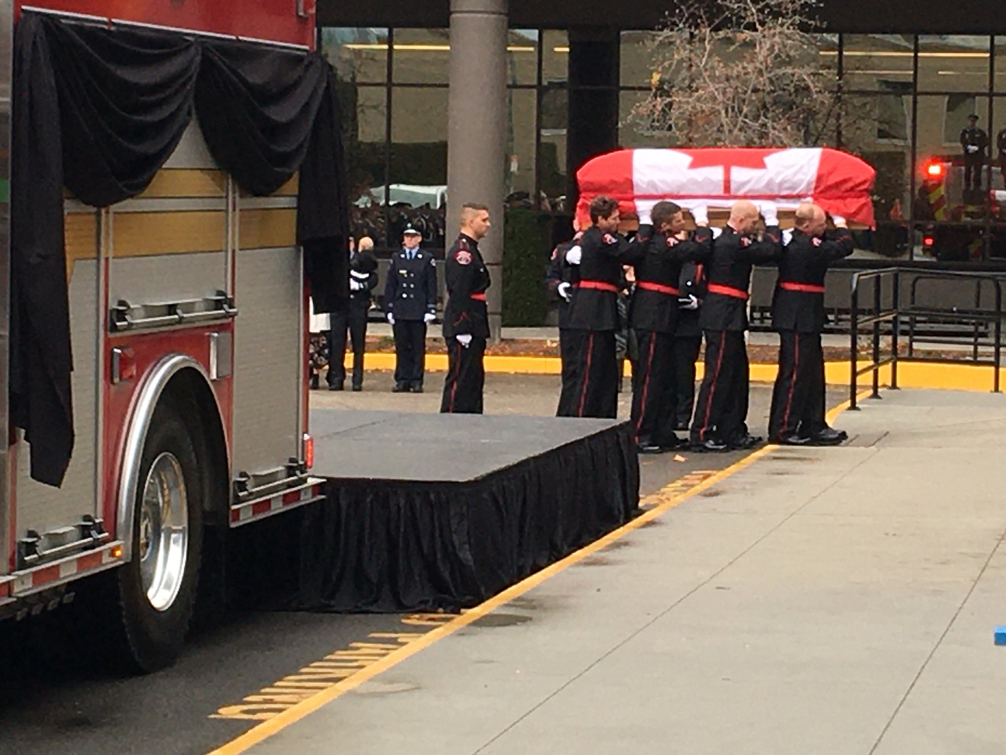 The funeral procession included emergency responders from around British Columbia and stretched across four city blocks, which were shut down to traffic.
