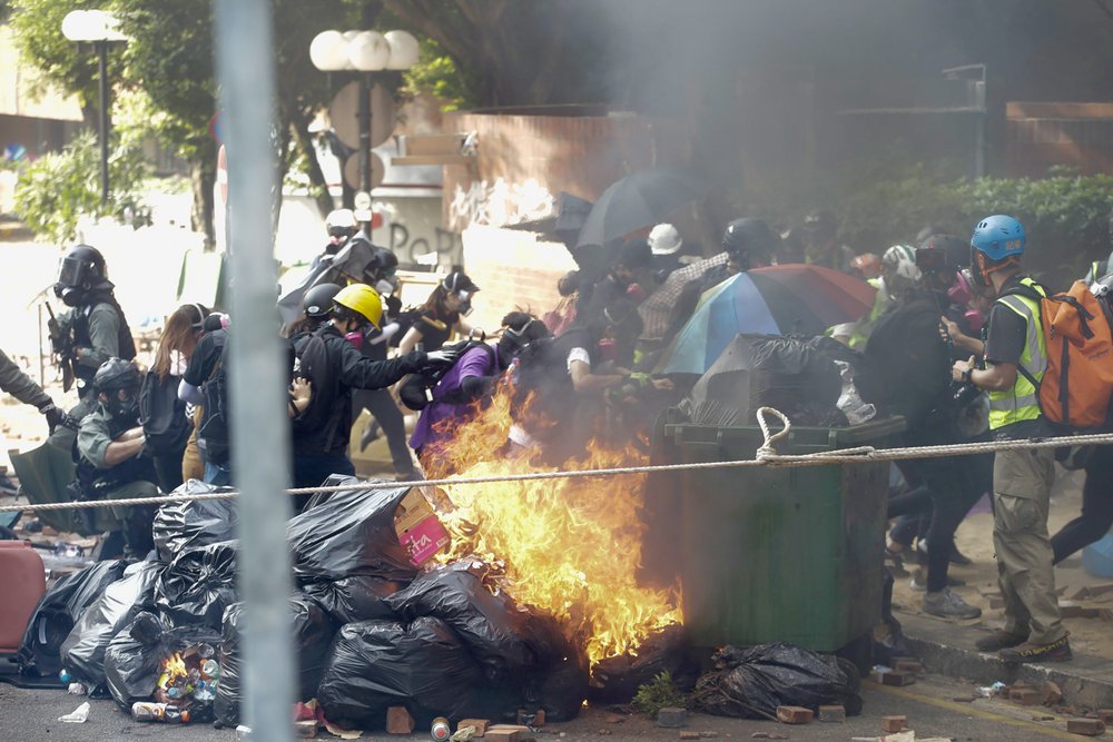 Riot officers broke into one university entrance before dawn Monday as fires raged inside and outside, but they didn’t appear to get very far. Fiery explosions could be seen as protesters responded with gasoline bombs. Police, who have warned that everyone in the area could be charged with rioting, reportedly made a handful of arrests.