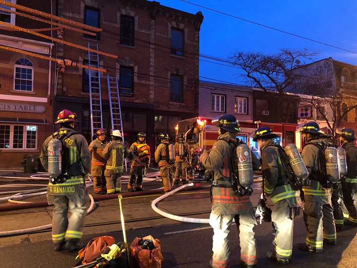 Toronto Fire Services says crews battled a three-alarm fire in the city’s Parkdale neighbourhood on Tuesday morning.