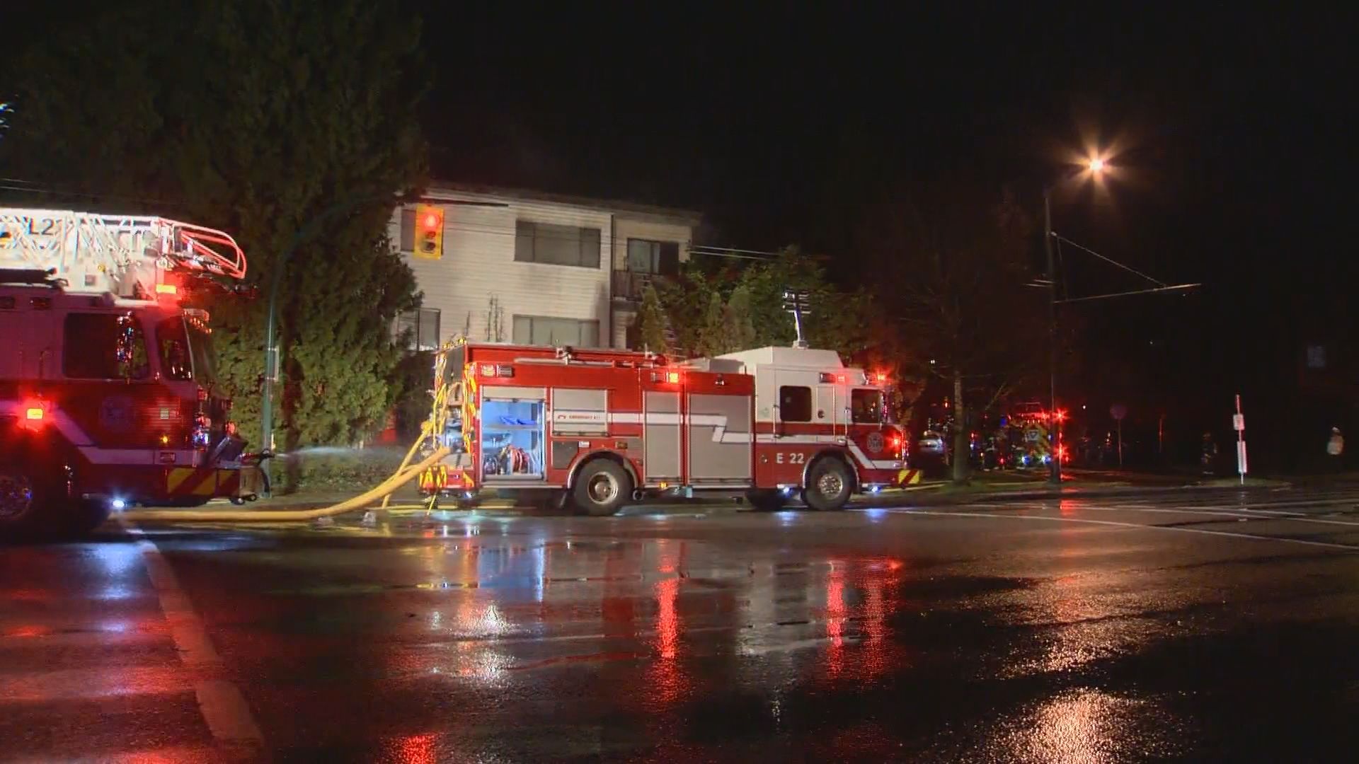 Officials say seven people were rescued from a fire in a three-storey apartment complex on Southwest Marine Drive near Heather Street.