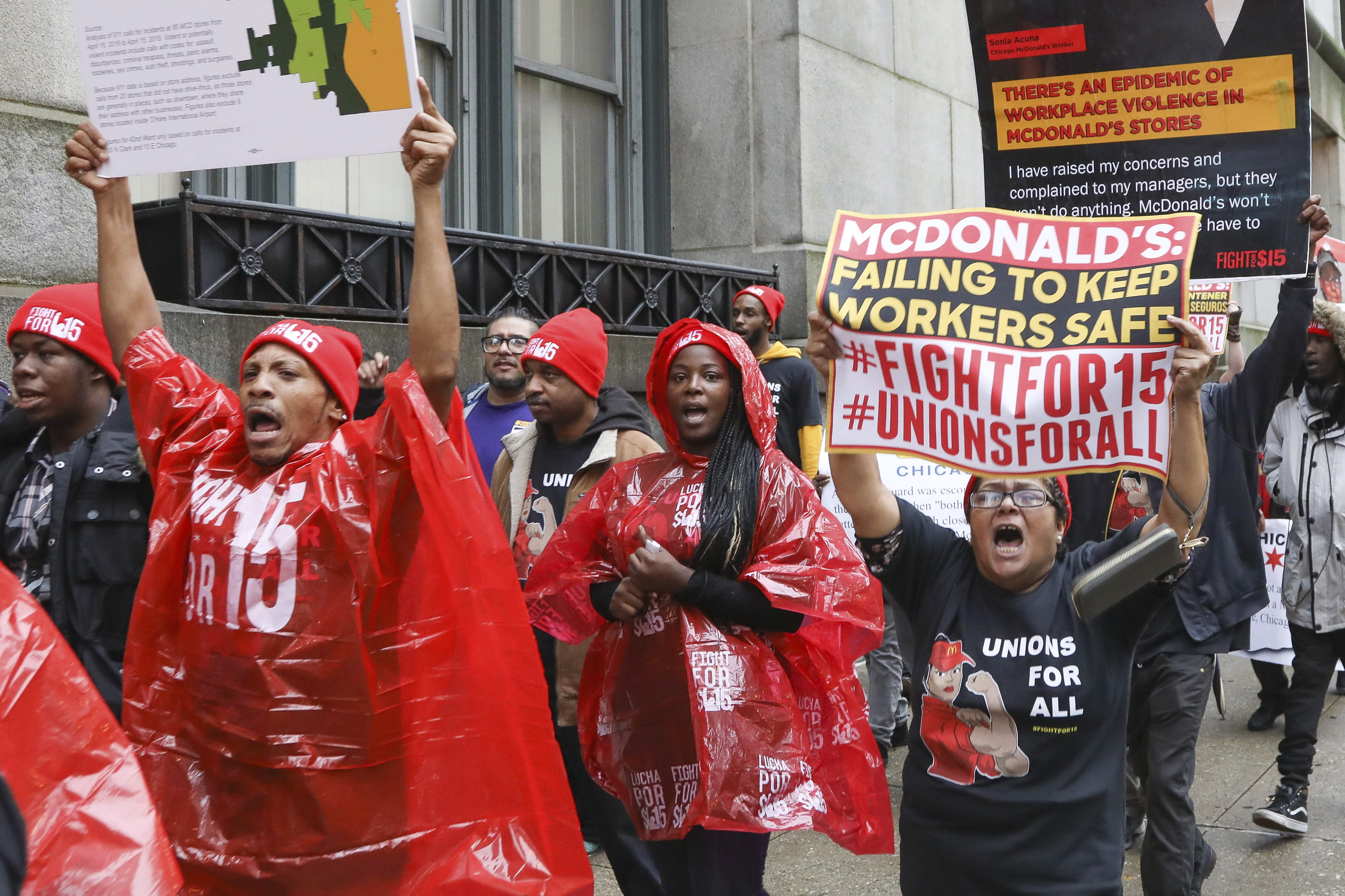 In the lawsuit filed in Cook County court, the 17 workers say McDonald’s has failed to protect them from what they say is a “citywide and nationwide” pattern of violence and that police respond to more than 20 911 calls every day regarding Chicago McDonald’s restaurants. They cite several examples of the violence, including an incident in which a customer beat an employee with a sign and another in which a customer urinated on a worker.