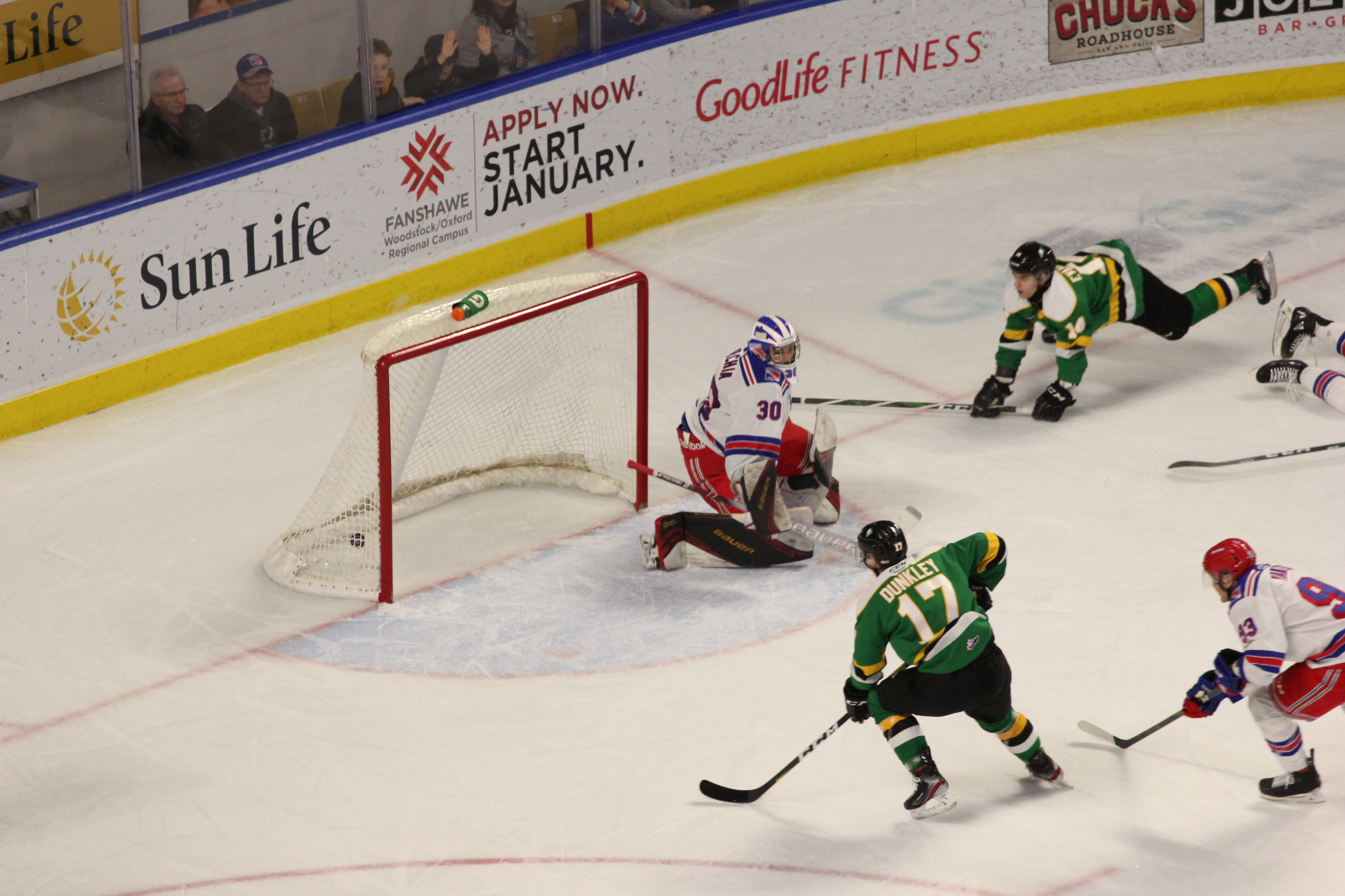 London is one point behind the Guelph Storm for first place in the Midwest Division. Guelph won their tenth game in a row on Friday when they shut out the Sarnia Sting 3-0.