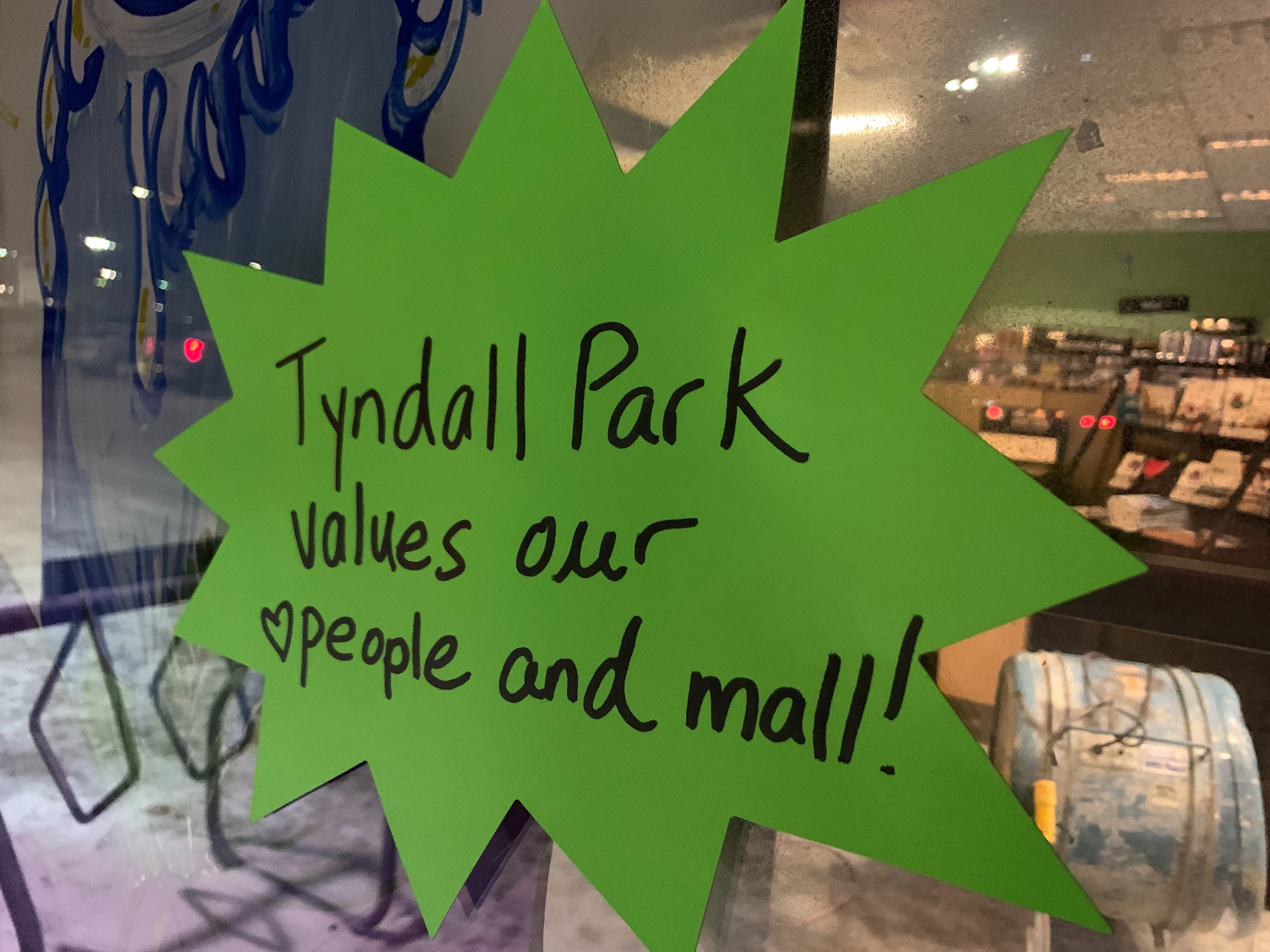“Criminals never win,” reads another. “This mall is a safe and peace-filled place. #TyndallStrong.”