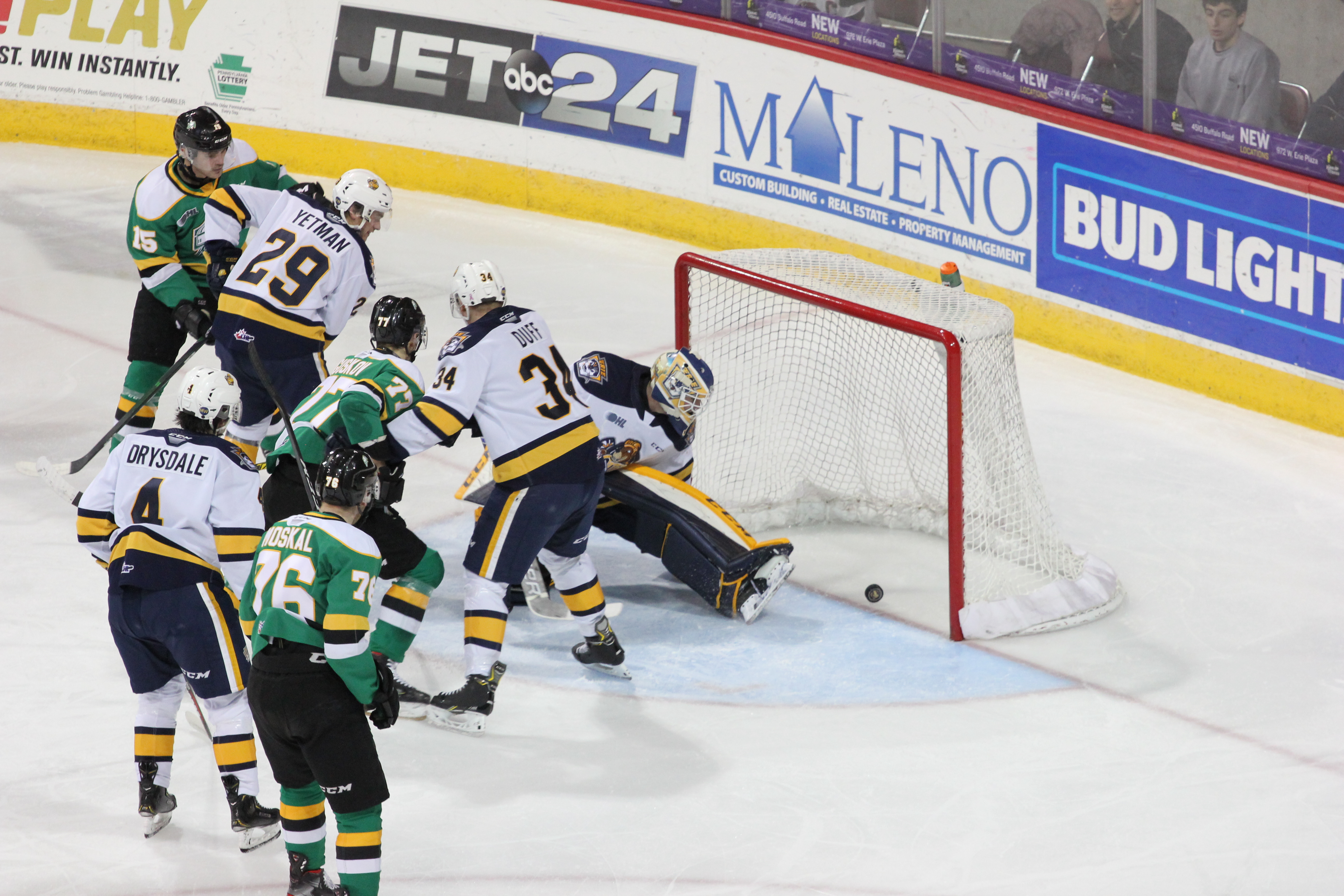 Tonio Stranges got things going on an unassisted effort early in period two as he pushed the puck past a defender in centre ice, won a race to it and rocketed a wrist shot past Erie goalie Daniel Murphy.