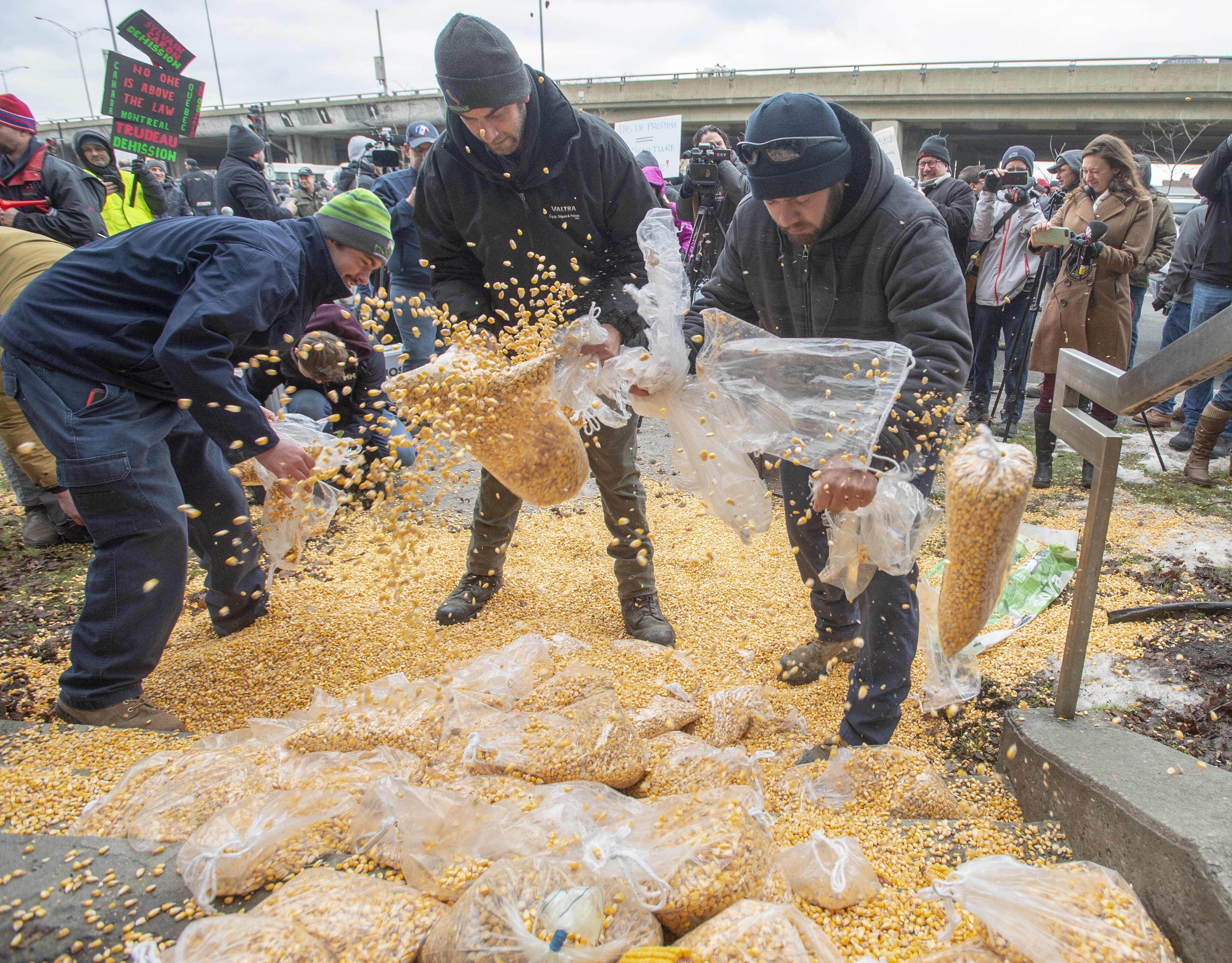 The convoy of tractors made its way to Prime Minister Justin Trudeau’s riding office in Montreal, where farmers dumped corn on the ground. The protest comes after farmers visited CN headquarters on Friday last week.