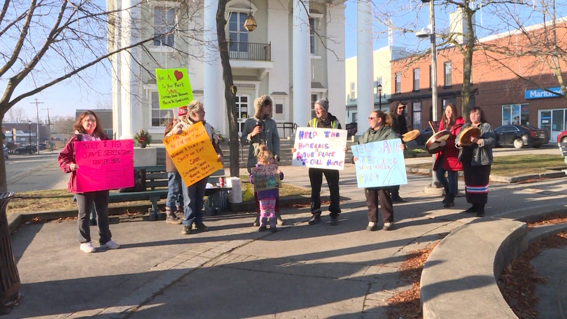 Around 15 people gathered at Napanee’s town hall on Monday to show support for what Drader calls his “stepping stone homeless shelter.”