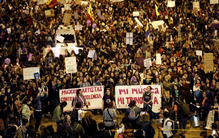 Students, women’s activists and indigenous people marched through the centre of Colombia’s capital Monday in a fifth day of protests against the government as the country recorded the first death of a demonstrator.