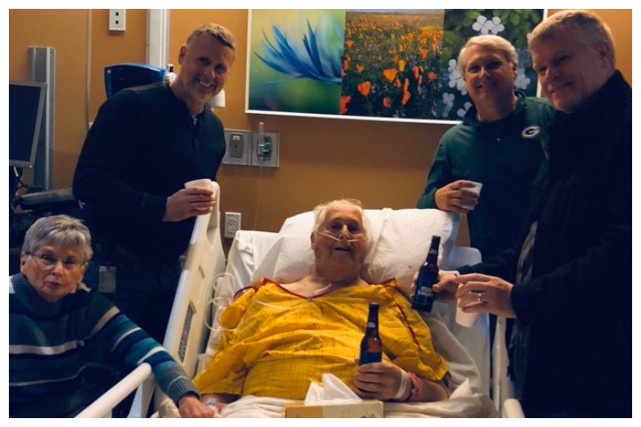 A heartwarming photo of Dad and his children has since gone viral after his grandson posted the image on Twitter Nov. 20. The photo shows Norbert in a hospital bed with a Bud Light in his hand. His wife, Joanne, and their children Bob, Tom and John are also in the picture. Norbert’s three sons are all holding beers.