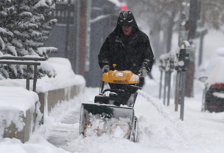 About 10 inches (25 centimetres) of snow mixed with winds that limited visibility and cancelled about 30% of the 1,600 average daily flights at Denver’s main airport.