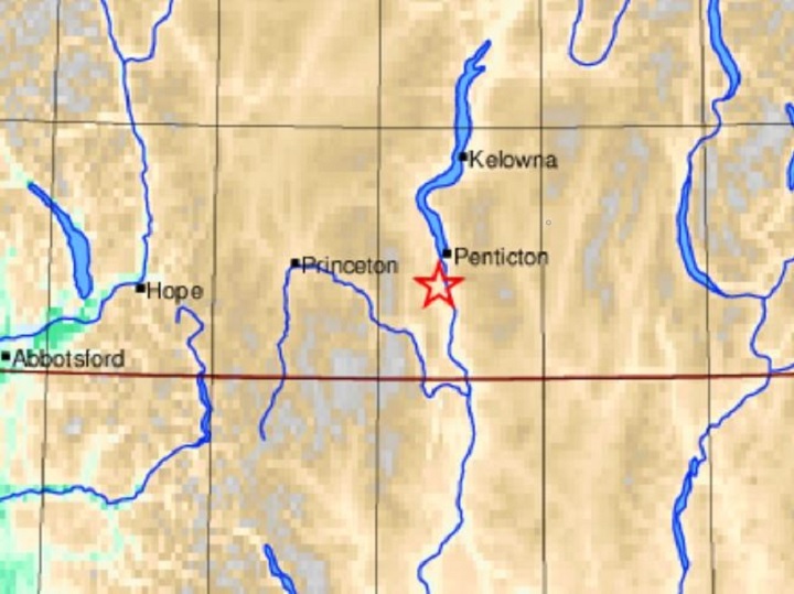 The earthquake’s location was listed with a latitude of 49.37 north and a longitude of 119.63 west, which approximately puts it just west of the Highway 97 and Highway 3A interchange between Kaleden and Okanagan Falls.