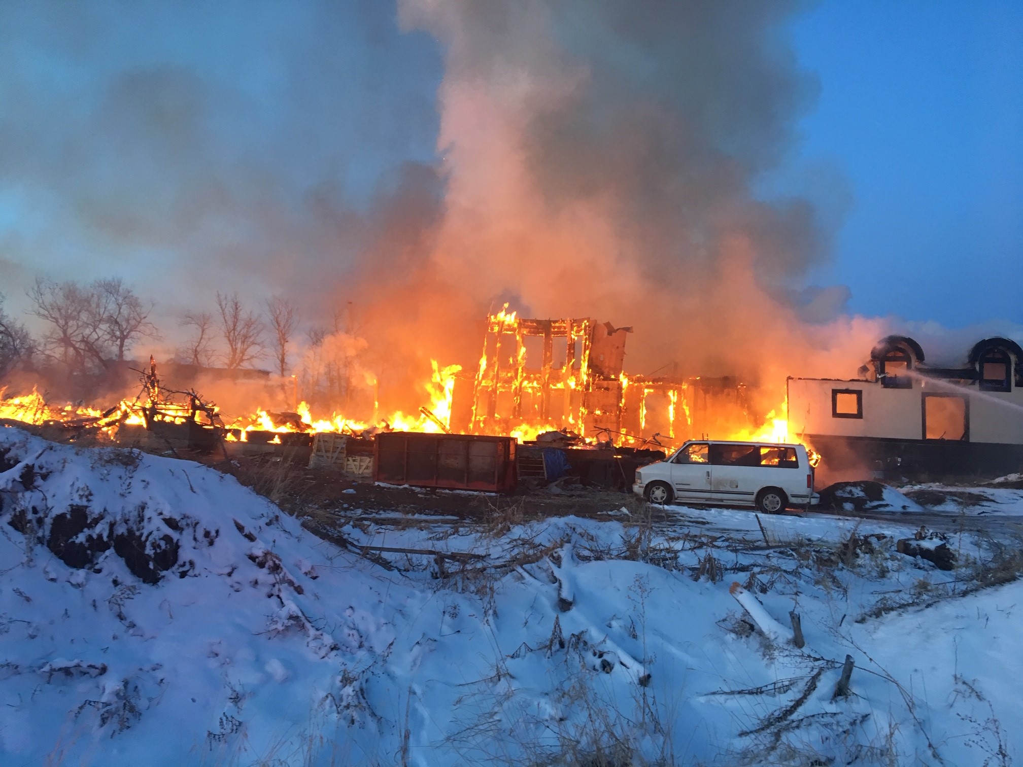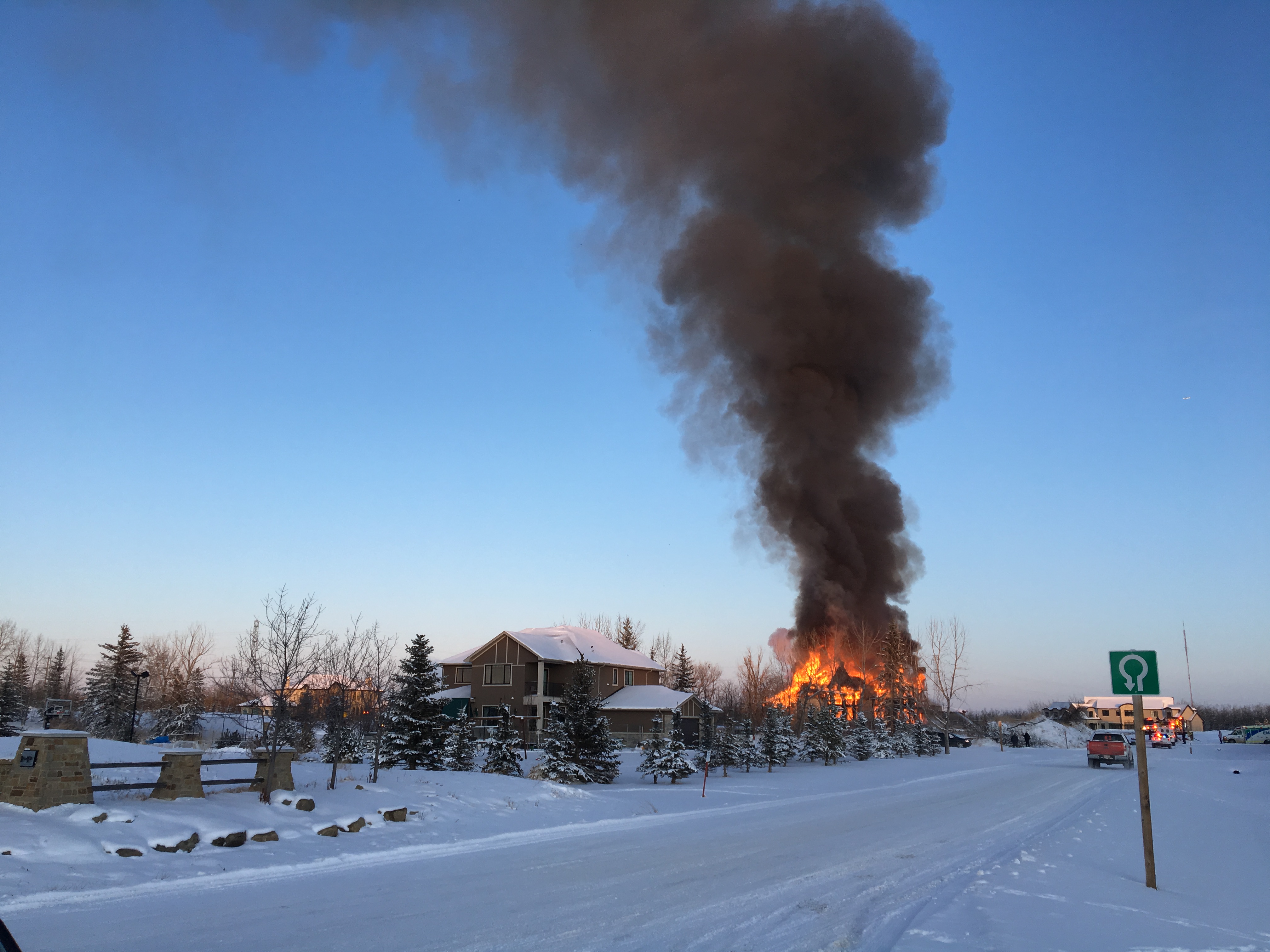 Photos from the scene showed a home engulfed in flames and thick, black smoke billowing into the sky.