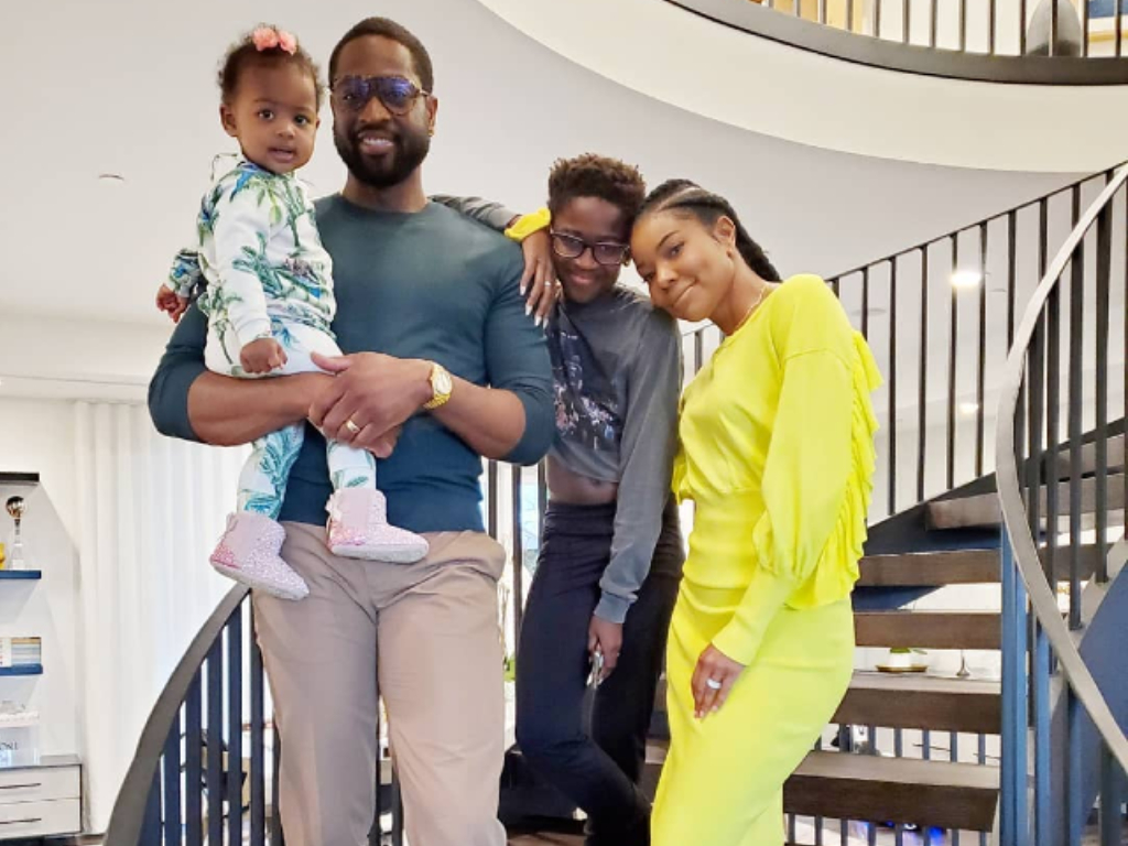 Gabrielle Union recently shared a family photo on her Instagram account. In it, husband Wade holds their one-year-old daughter, Kaavia, and Wade’s 12-year-old son Zion is standing between them.