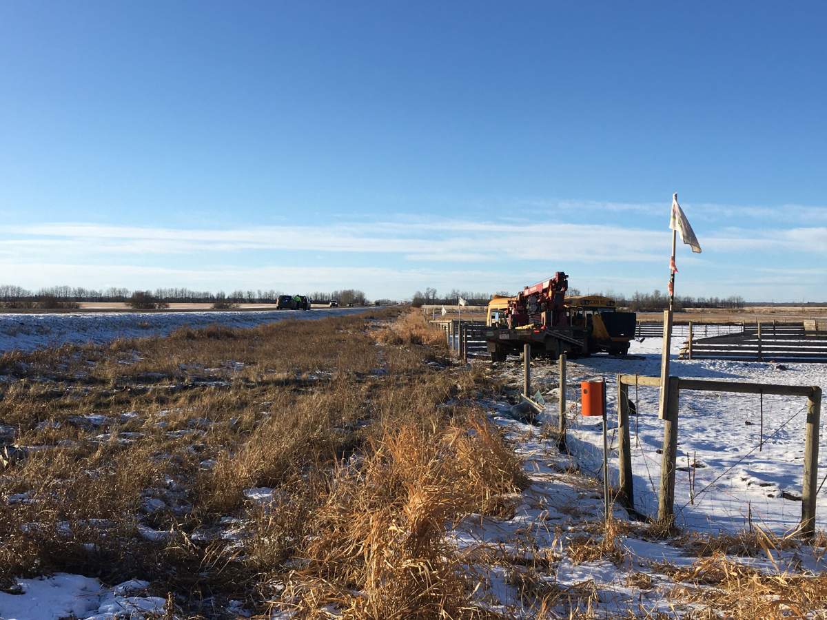 The crash happened at around 8:30 a.m. at the intersection of Highway 28 and Range Road 180. RCMP said the bus was heading north on Range Road 180 and the picker truck was heading west on Highway 28 when the collision occurred.