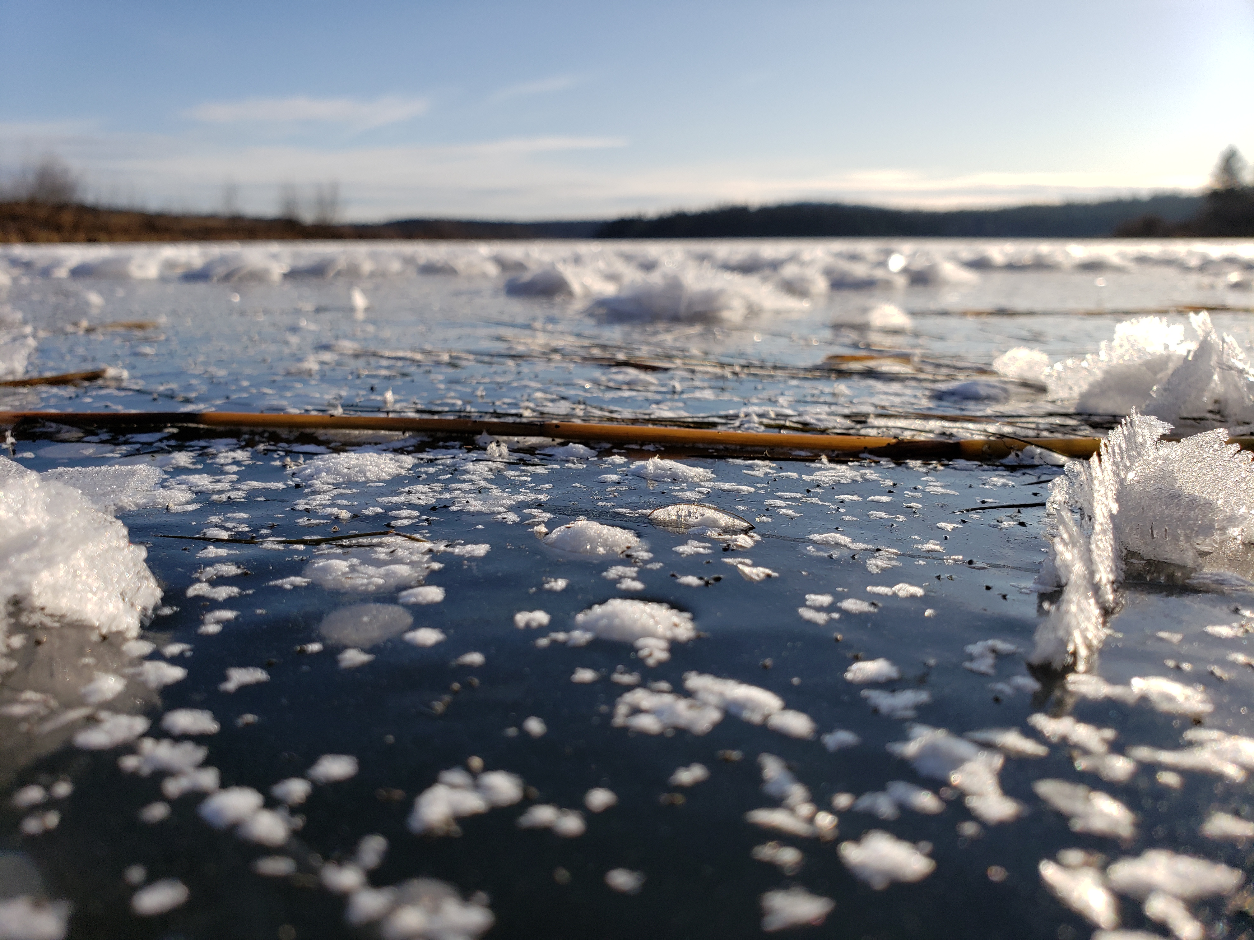 First, the ice must be fairly thin so that the temperature of the ice is not too cold. That is why this phenomenon typically occurs near the beginning of the winter season, and it is not recommended you venture out on to the ice.
