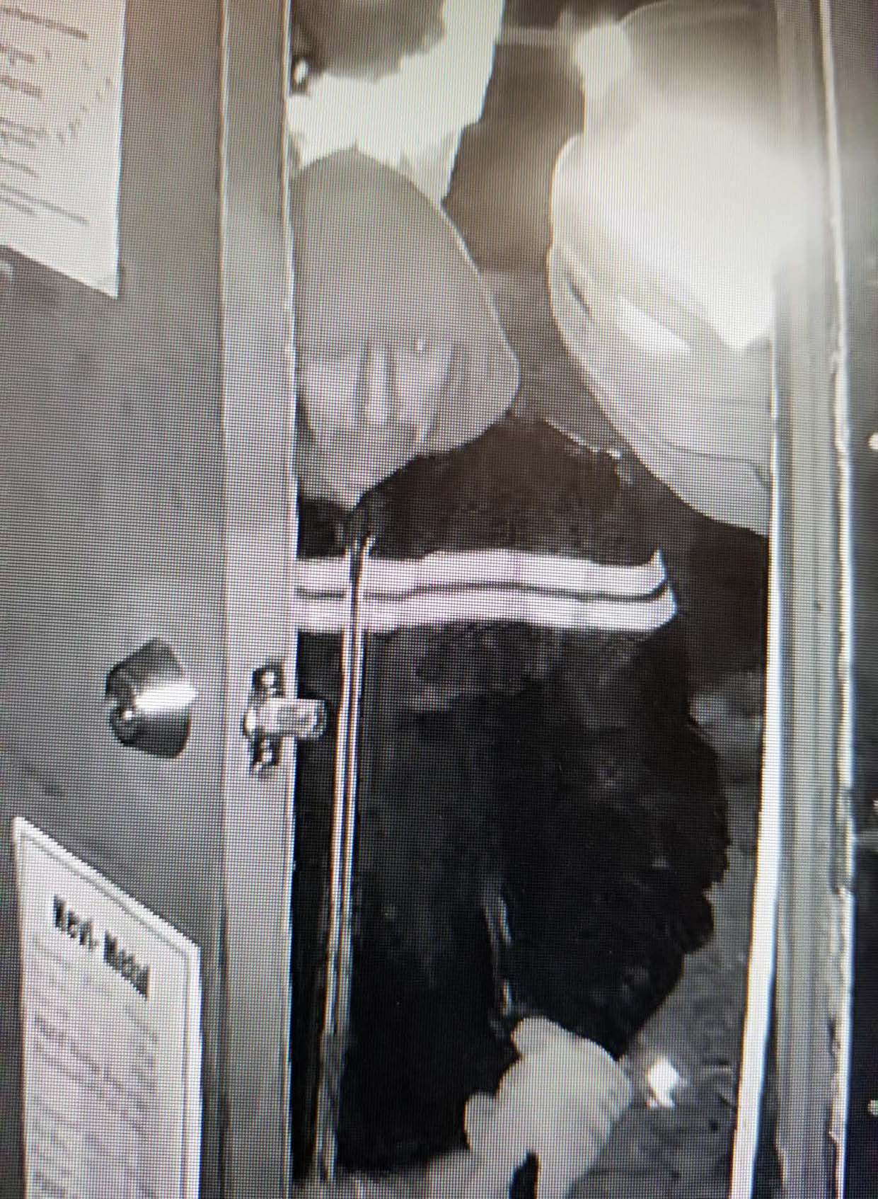 RCMP said one suspect was wearing a dark jacket with two horizontal red stripes on the chest, a grey hooded sweater under the jacket, blue jeans, work gloves and white and brown shoes.