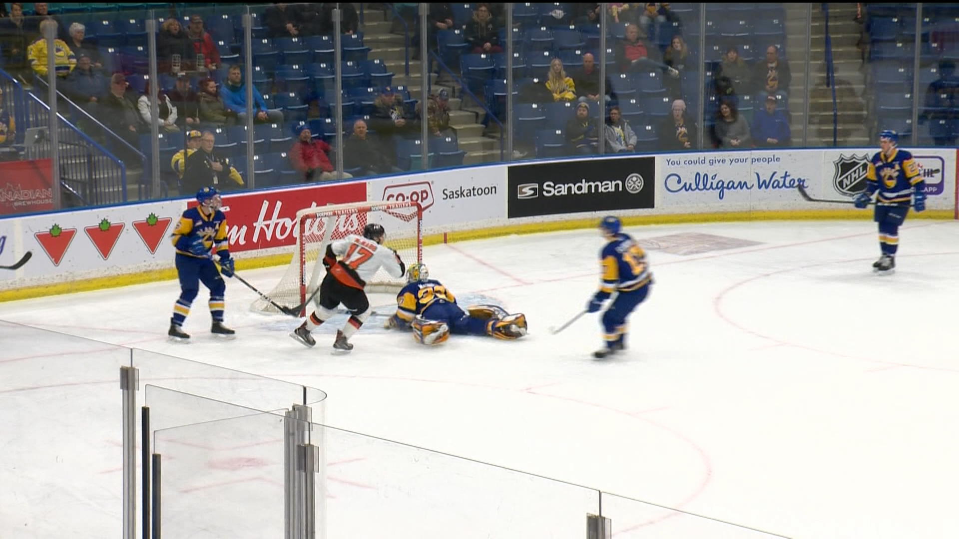 Chase Wouters had a pair of goals in a losing cause. Jayden Wiens also scored for Saskatoon (14-14-3).