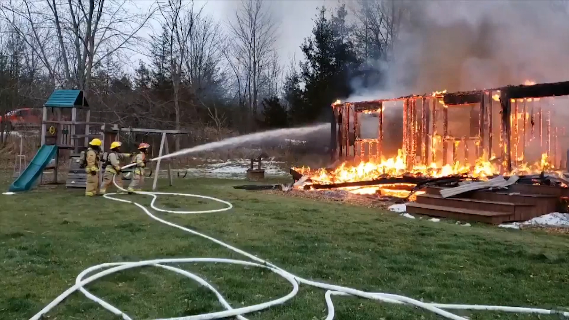 Fire crews arrived to find a house on Dafoe Street in Roblin, Ont., completely engulfed in flames.