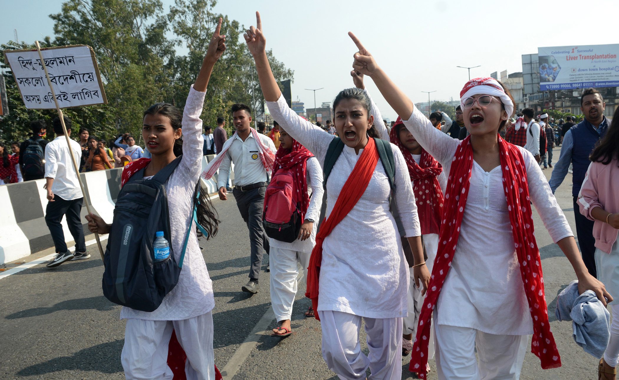 Street protests continued in Guahati, with young demonstrators making bonfires across the city. Police used tear gas and batons to disperse hundreds of protesters who tried to march to the office of the state’s top elected official.