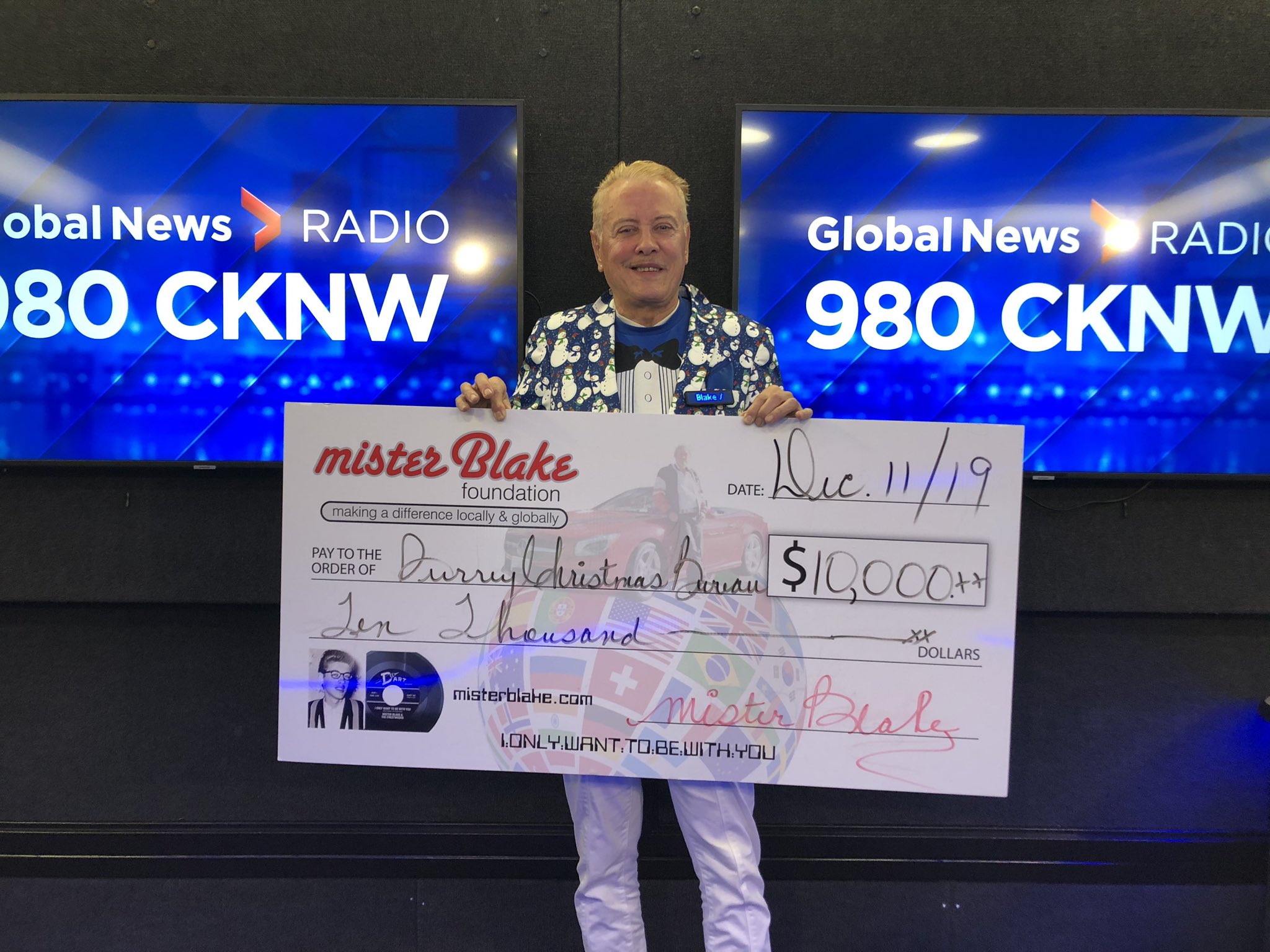 But people have already stepped in to help, including a longtime CKNW Kids Fund donor, Blake Elliott, who offered a $10,000 donation — giant novelty cheque and all — from his mister Blake Foundation Wednesday afternoon.