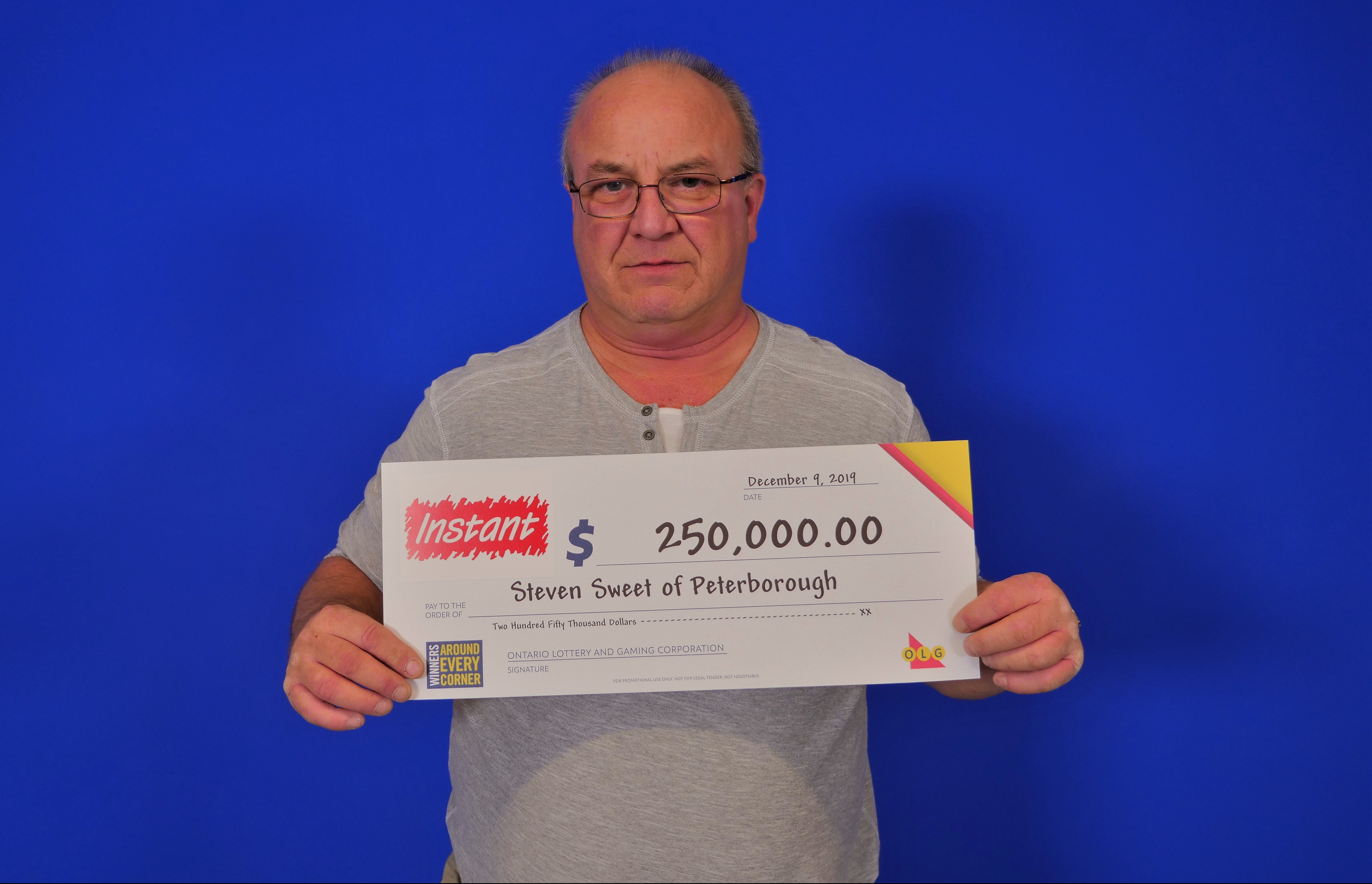 According to the OLG, Steven Sweet won the top prize on the Instant Cash Out Multiplier game (game #2157). Tickets are $10 each with the odds of winning any prize are 1 in 3.80.