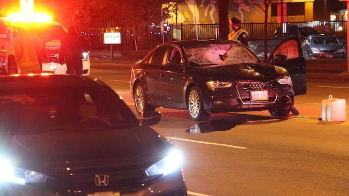In an updated release Monday morning, police said a 22-year-old man driving a 2015 Audi was travelling eastbound on Lawrence Avenue East, just east of Barrymore Road.