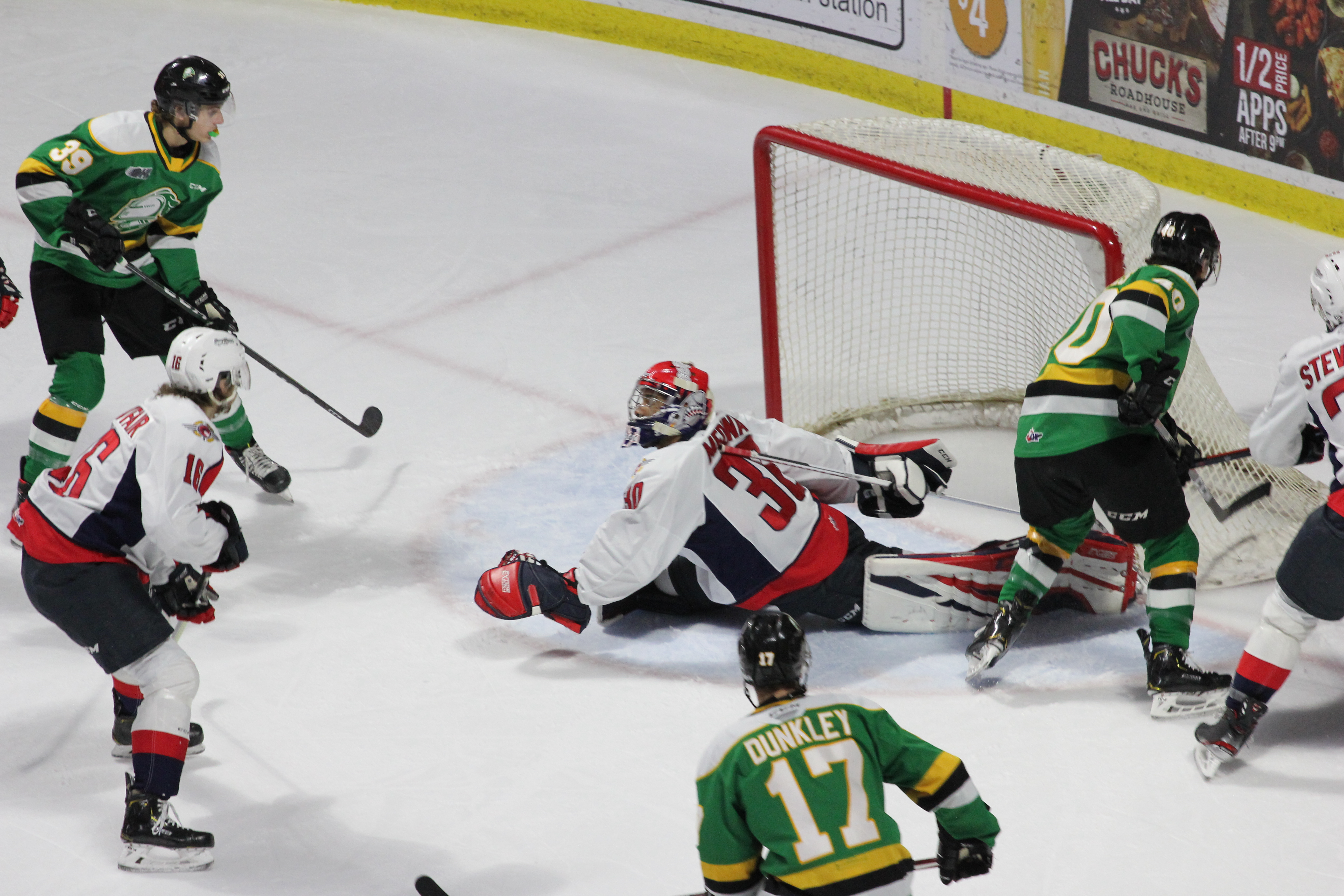 The third period saw more London chances early on, but some big stops from Medina kept the puck out.