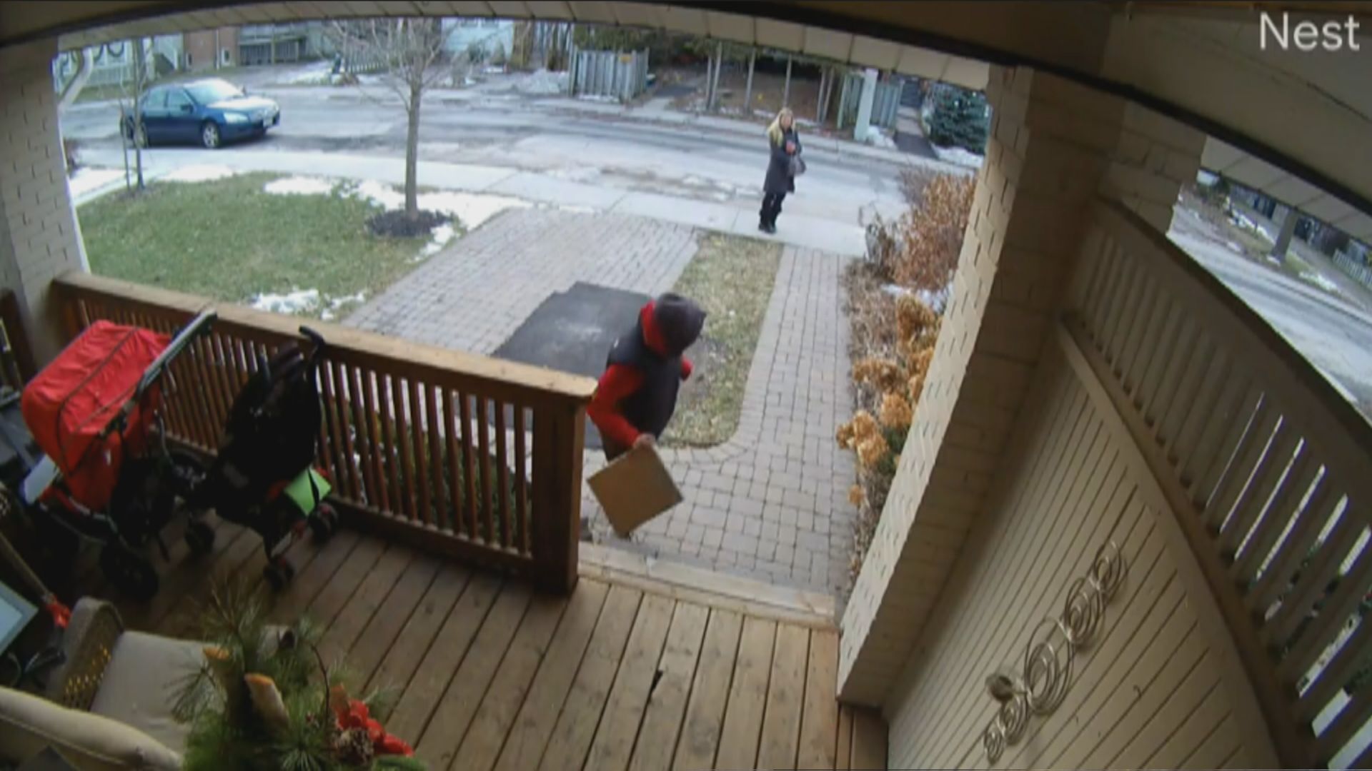A Toronto woman is warning others to be vigilant after catching thieves on camera stealing a package from her family’s porch.