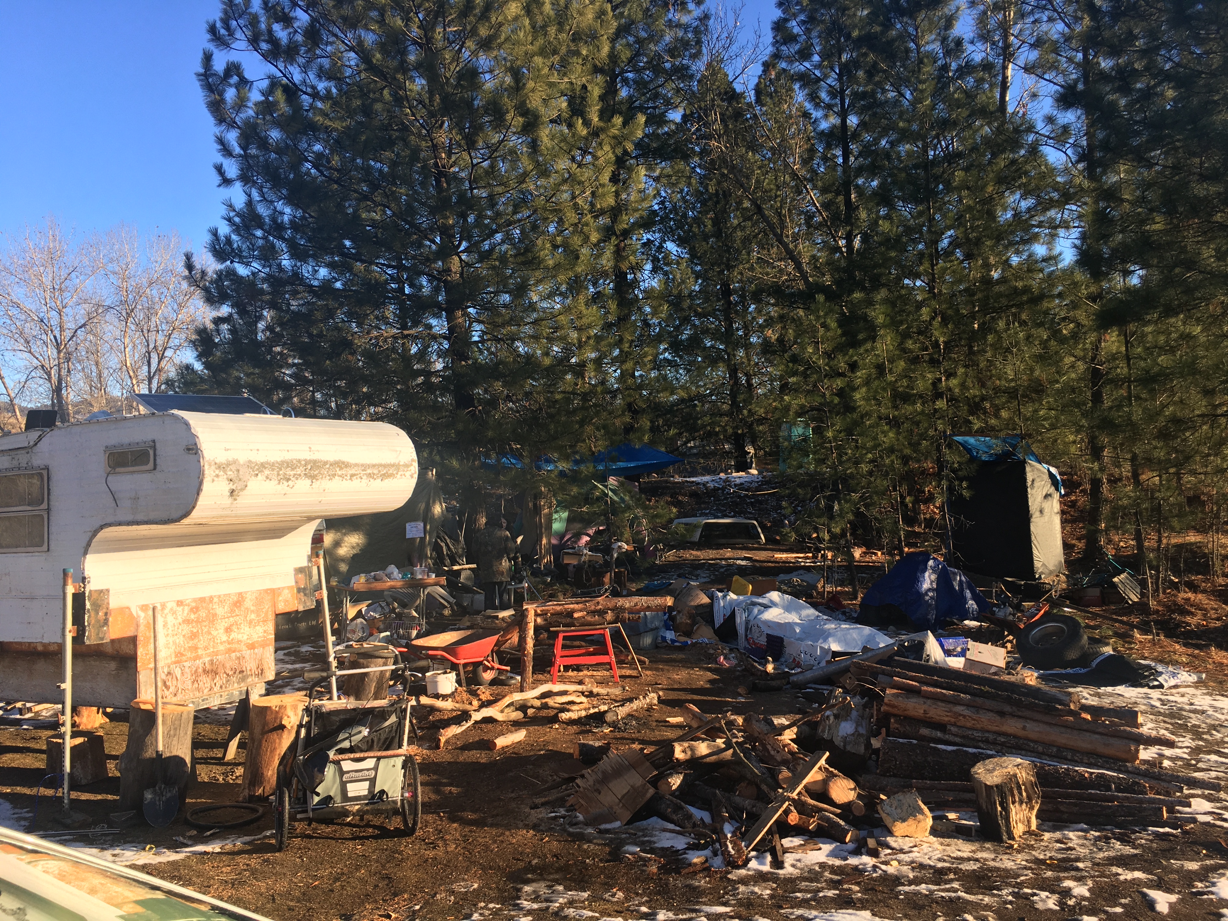 Atchison and at least 10 other people are living in trailers at the encampment without service connections. Therefore, they do not have access to power, heat or sewer in sub-zero temperatures.