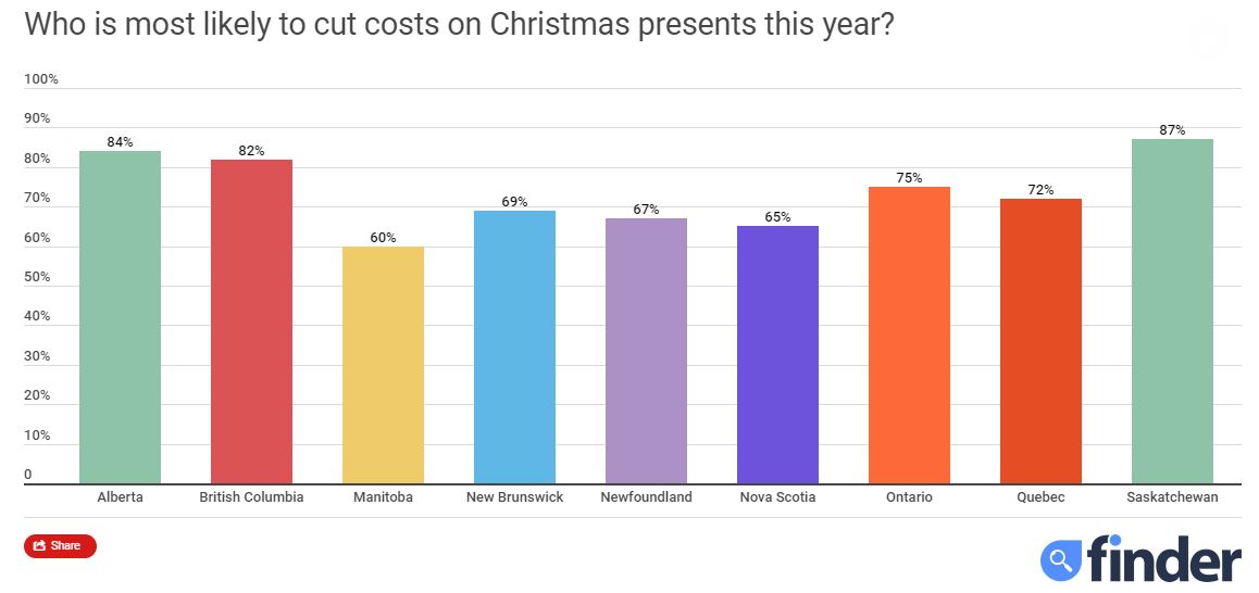 A survey the company did found those in Saskatchewan and Alberta are the first and second most-likely to cut costs. It found women are more likely than men to save money on presents this year.