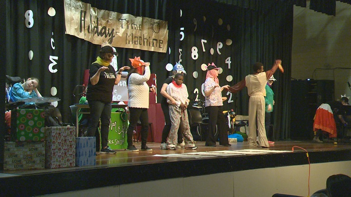 The original production, “Holiday Time Machine“, was created and performed by students who attend the Developmental Center at Campus Regina Public.