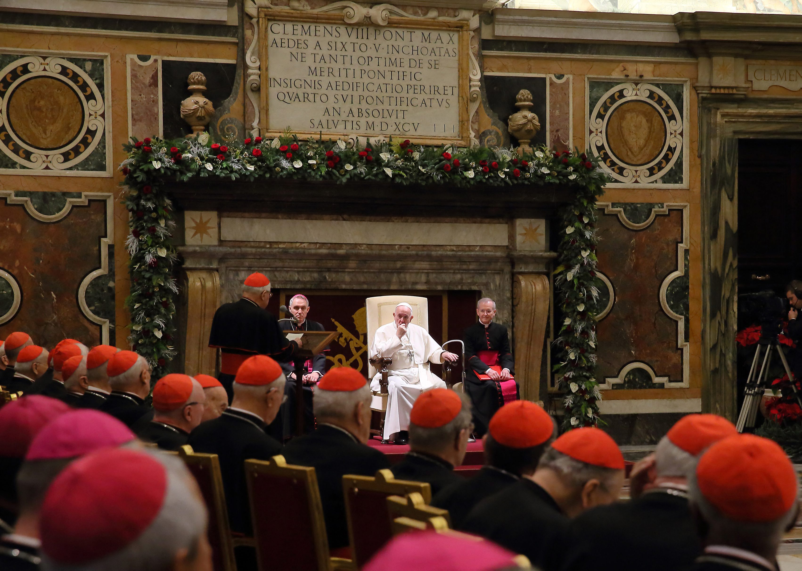 Francis called for Vatican bureaucrats to instead embrace change during his annual Christmas greetings to the cardinals, bishops and priests who work in the Holy See.