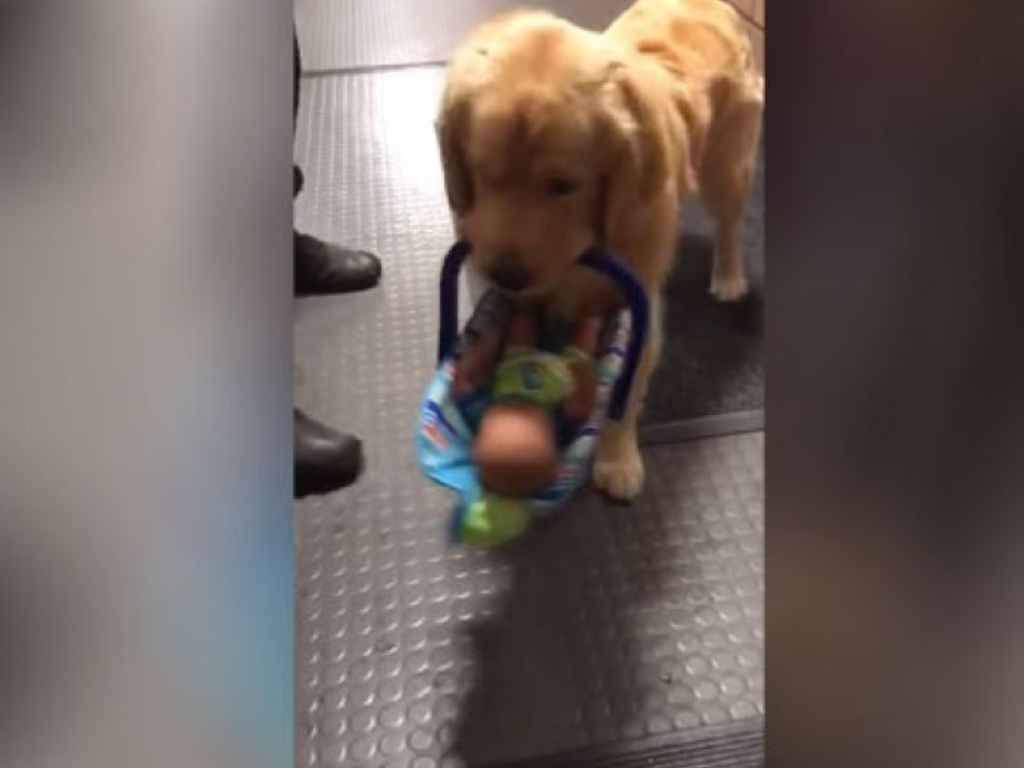 On Dec. 18, the department shared a video on social media of the dog with a toy baby in its mouth, walking down a hallway and into a room where it keeps its stash of toys.